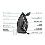Ferro De Passar A Vapor Philco 320ml Base Cerâmica PFV70 110VImagine um Ferro de Passar com base em cerâmica avançada que desliza suavemente sobre os tecidos, sem grudar, proporcionando um resultado impecável em cada peça. Este é o Ferro de Passar a Vapor Philco PFV70!Com um reservatório generoso de 320ml, você nunca mais perderá tempo verificando o nível de água. Acompanhe em tempo real e ganhe autonomia para passar suas roupas de maneira eficiente e sem interrupçõesA função Vapor Vertical é a solução ideal para quem busca praticidade. Desamasse suas roupas diretamente no cabide, economizando tempo e facilitando seu dia a dia. Já com a função Vapor Extra, elimine amassados e vincos difíceis, de maneira rápida e fácil.Com 92 saídas de vapor estrategicamente posicionadas, o Ferro PFV0 distribui uniformemente o vapor. E, somada à base Ceramic Xtreme, que não gruda nos tecidos, tenha resultados eficientes e profissionais em minutos.Experimente o poder da tecnologia aliado à praticidade no seu dia a dia. Com o Ferro de Passar a Vapor Philco PFV70, você não só cuida das suas roupas com mais eficiência, mas também ganha tempo para aproveitar o que realmente importa. Principais Características- Base cerâmica- Função Vapor com 30g/min- Função jato extra de vapor- Função jato de água- 92 saídas de vapor- Vapor vertical- Capacidade reservatório de água de 320ml- Cordão emborrachado- Cordão giratório- Salva botões- Luz indicadora de funcionamento.Observação: Somente faturamos para o nosso consumidor final, ou seja, não faturamos pedidos para CNPJ por este portal de vendas.Especificações TécnicasMarca: PhilcoCor: PretoCapacidade Reservatório de Água: 320 mlComprimento cordão elétrico: 1,6m (metros)Estado: NovoPotência: 1200W (127V) | 2200W (220V)Consumo (kW/h): 1,2 (127V) | 2,2 (220V)Material da base: CerâmicaTipo cordão elétrico: GiratórioAltura do produto: 31 cmLargura do produto: 13 cmComprimento do produto: 15 cmPeso do produto: 1,07 kgAltura com embalagem: 16,3 cmLargura com embalagem: 31 cmComprimento com embalagem: 13 cmPeso com embalagem: 1,5 kgGarantia: 360 Dias