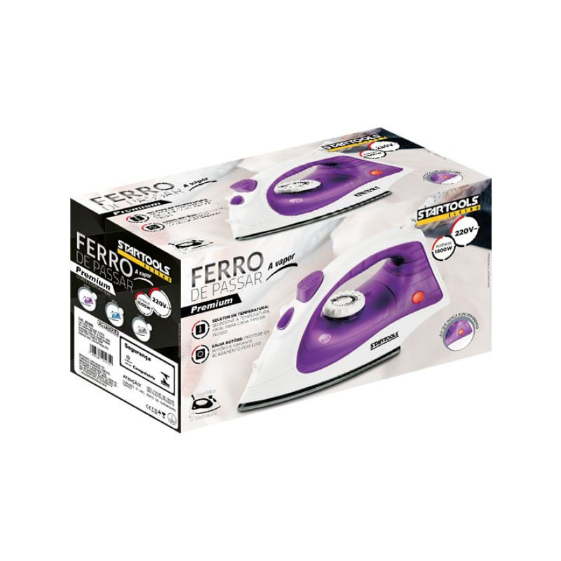 Desenvolvido para atender às necessidades do dia a dia, ele oferece uma performance superior que facilita o cuidado com todos os tipos de roupas, das mais leves às mais exigentes. Com 1500W de potência, este ferro aquece rapidamente e mantém uma temperatura constante, garantindo um desempenho uniforme e eficaz. A poderosa função spray de água ajuda a umedecer os tecidos, facilitando a remoção de amassados e vincos difíceis com muito mais rapidez.Sua base antiaderente desliza suavemente sobre qualquer tipo de tecido, evitando que as roupas grudem ou sofram danos por superaquecimento. Isso proporciona uma experiência de passar muito mais segura e eficiente, com resultados impecáveis. O design ergonômico foi pensado para oferecer conforto durante o uso, mesmo por longos períodos. Além disso, o aparelho se destaca pelo seu acabamento moderno e sofisticado, com uma elegante cor roxa, que traz um toque de personalidade e estilo ao seu ambiente doméstico. Acompanha um dosador de até 100ml. Características do Produto:- Leve- Poupa Botões- Proteção Contra Sobrecarga- Seletor de Temperatura- Base Cerâmica AntiaderenteEspecificações:Dimensões: Alt.: 12cm x Larg.: 10cm x Comp.: 24cmTensão: 127VPotencia: 1500WFrequência: 60HzGrau de Proteção: IPX0Peso: 146gCor: Roxa Reservatório Água Capacidade: 150mlContém:01 Ferro de Passar A Vapor Premium 127V - Roxa