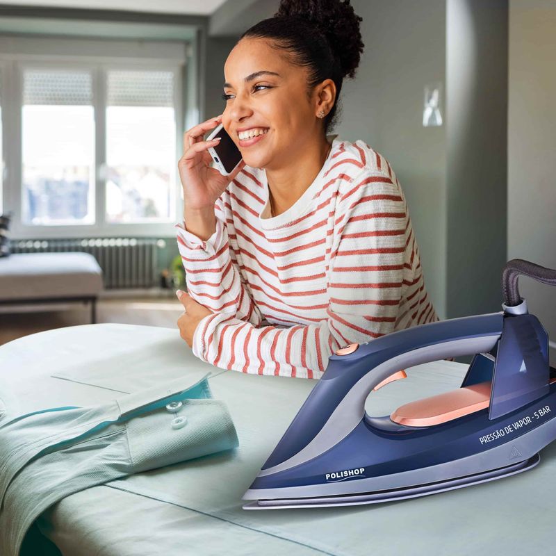 As roupas que vestimos refletem quem somos. Independentemente do estilo ou da ocasião, uma coisa é fundamental: elas precisam estar impecáveis! Com o Ferro de Passar Protect & Care, você conta com a combinação perfeita de tecnologia e eficiência. Ele une vapor de alta pressão e temperatura inteligente para deixar suas roupas perfeitamente passadas, alinhadas e confortáveis – tudo isso sem o risco de queimar ou danificar os tecidos. Versatilidade para todos os tecidos Algodão, linho, seda, veludo, cetim, lã ou jeans? Não importa! Protect & Care passa qualquer tecido mais rápido, graças ao seu potente vapor de 5,5 bares de pressão. Ele amacia as fibras, elimina vincos com precisão e mantém suas peças com aparência de novas por muito mais tempo. Tecnologia na hora de passar roupa Com o exclusivo sistema Auto Adapt, ajustar a temperatura para cada tecido é coisa do passado. Esse processador inteligente garante a temperatura ideal, constantemente, sem necessidade de regulagens manuais. Seu revestimento em cerâmica Smooth Glide é resistente a riscos e sujeiras, além de deslizar suavemente por qualquer tecido, proporcionando uma experiência de passar roupa sem esforço! ¸ Praticidade e eficiência incomparáveis E para entregar suas roupas ainda mais impecáveis, Protect & Care conta com potência surpreendente de 1800W que transforma a água em puro vapor. E com reservatório de 1,5 litros, o Protect & Care dá conta de toda a roupa, sem precisar reabastecer! Para ainda mais facilidade, seu painel digital deixa a experiência ainda melhor! O Ferro a Vapor Protect & Care é uma exclusividade POLISHOP!