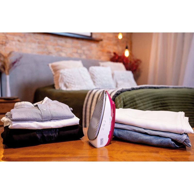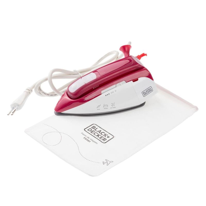Ferro de Viagem Black+Decker FXVG1-BR + Bivolt + Alça Dobrável + Vapor Vertical + Base Antiaderente O Ferro de Viagem Black+Decker FXVG1 é o companheiro indispensável para quem não abre mão de roupas impecáveis durante os seus deslocamentos. Com um design inteligente e alça dobrável, ele ocupa o mínimo de espaço na mala, tornando-se prático para carregar em qualquer bagagem de mão ou mochila. Este modelo oferece a versatilidade de funcionar tanto a seco quanto a vapor, incluindo a poderosa função de vapor vertical, ideal para desamassar peças diretamente no cabide. Sua base antiaderente garante que o ferro deslize com suavidade sobre diferentes tipos de tecidos, removendo até os vincos mais difíceis sem esforço. Para maior conveniência, o ferro é bivolt e acompanha uma exclusiva bolsa para transporte, protegendo o aparelho durante o trajeto. Com ajuste de temperatura e um cabo elétrico de 1,9 metros, ele proporciona a segurança e o alcance necessários para cuidar das suas vestimentas com a qualidade que só a Black+Decker oferece. Alça dobrável que reduz o tamanho para facilitar o armazenamento. Vapor vertical para desamassar roupas diretamente no cabide. Base antiaderente para um deslizamento suave e eficiente. Bivolt, ideal para ser usado em qualquer destino de viagem. Confira também outros produtos incríveis para cuidar das suas roupas !