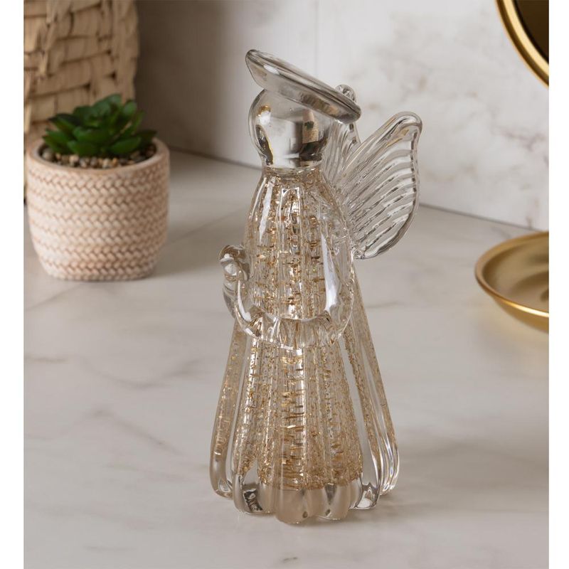 Figura Decorativa Anjo 9cm x 20cm Transparente e Dourado