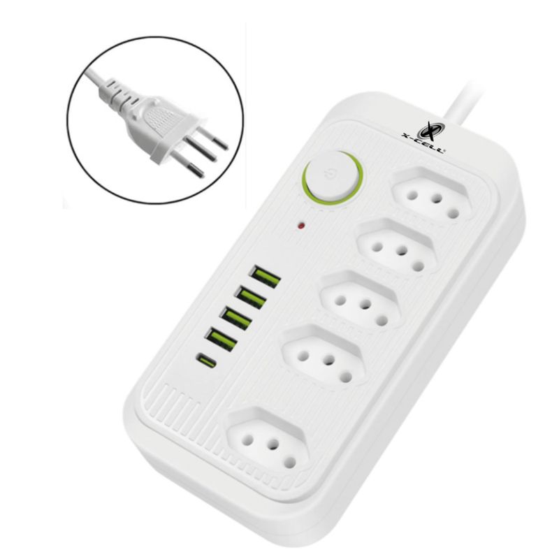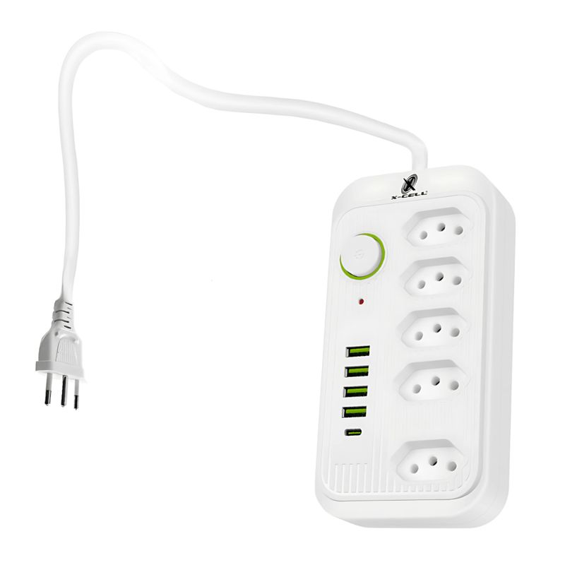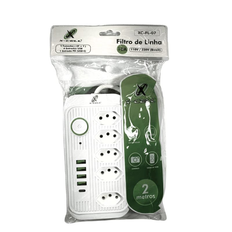 Filtro de Linha X-cell bivolt 10A Cabo 2m 5 Tomadas + USB/C Projetado para oferecer praticidade e segurança, este filtro de linha X-cell combina múltiplas conexões com proteção elétrica eficiente. Com tomadas tradicionais e portas USB, incluindo USB-C com suporte PD, é ideal para conectar e carregar diversos dispositivos simultaneamente, otimizando o espaço e o uso de energia em residências ou escritórios. Especificações Técnicas Marca: X-cell Tensão: 110/220 bivolt Corrente: 10A Comprimento do cabo: 2 m Número de tomadas: 5 (2P + T) Portas USB: 4 USB-A Porta USB-C: 1 com suporte Power Delivery (PD) Acionamento: Botão on-off Recursos Técnicos Adicionais Portas USB adicionais para carregamento direto de dispositivos móveis Porta USB-C com tecnologia PD para carregamento rápido e eficiente Botão liga/desliga integrado para controle da alimentação Design compacto e cabo longo para maior alcance Compatibilidade e Aplicações Indicado para uso com eletrônicos diversos como carregadores, luminárias, monitores, notebooks, dispositivos móveis e periféricos