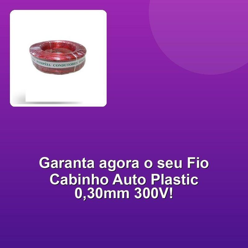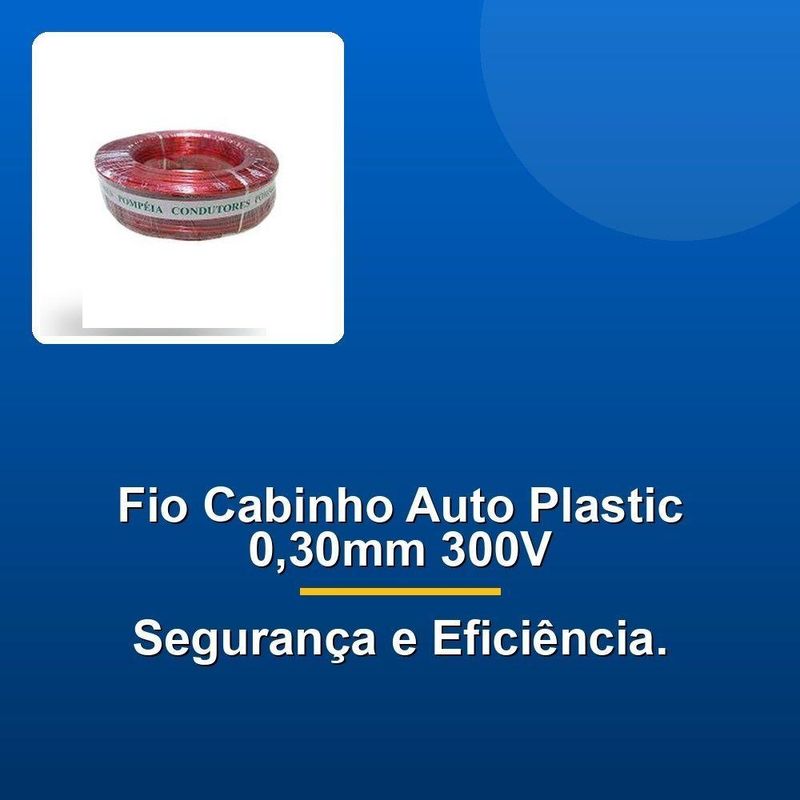 Fio Cabinho Auto Plastic Pompeia 0,30 Mm 300v Rolo Com...Transforme suas instalações elétricas com o Fio Cabinho Auto Plastic Pompeia 0,30mm 300V. Perfeito para garantir a segurança e eficiência em seus projetos, este fio de alta qualidade oferece máxima confiabilidade para conduzir corrente elétrica de forma eficaz. Com um diâmetro de 0,30mm e capacidade de 300V, o Fio Cabinho Auto Plastic Pompeia é ideal para uma ampla gama de aplicações, desde instalações residenciais até projetos industriais. Sua camada plástica resistente proporciona proteção adicional contra danos e desgaste, garantindo a durabilidade e a longevidade do fio.Nosso compromisso com a excelência transparece em cada detalhe. Selecionamos cuidadosamente os melhores fornecedores para garantir a qualidade impecável do Fio Cabinho Auto Plastic Pompeia. Esse cuidado com a seleção dos materiais reflete em um produto com alta resistência dieléctrica e baixo risco de falhas. A condutividade excepcional do fio garante um fluxo de corrente eficiente, evitando perdas e garantindo o bom funcionamento dos seus equipamentos.Acreditamos que a sua satisfação é fundamental. Por isso, trabalhamos incansavelmente para oferecer uma experiência de compra única e descomplicada. Demonstramos essa paixão pela excelência em cada etapa do processo, da seleção dos produtos até a entrega, sempre buscando oferecer rapidez e eficiência. Faça a escolha certa e destaque-se pela qualidade e confiabilidade com o Fio Cabinho Auto Plastic Pompeia 0,30mm 300V.Transforme suas instalações elétricas com o Fio Cabinho Auto Plastic Pompeia 0,30mm 300V. Perfeito para garantir a segurança e eficiência em seus projetos, este fio de alta qualidade oferece máxima confiabilidade para conduzir corrente elétrica de forma eficaz. Com um diâmetro de 0,30mm e capacidade de 300V, o Fio Cabinho Auto Plastic Pompeia é ideal para uma ampla gama de aplicações, desde instalações residenciais até projetos industriais. Sua camada plástica resistente proporciona proteção adicional contra danos e desgaste, garantindo a durabilidade e a longevidade do fio.Nosso compromisso com a excelência transparece em cada detalhe. Selecionamos cuidadosamente os melhores fornecedores para garantir a qualidade impecável do Fio Cabinho Auto Plastic Pompeia. Esse cuidado com a seleção dos materiais reflete em um produto com alta resistência dieléctrica e baixo risco de falhas. A condutividade excepcional do fio garante um fluxo de corrente eficiente, evitando perdas e garantindo o bom funcionamento dos seus equipamentos.Acreditamos que a sua satisfação é fundamental. Por isso, trabalhamos incansavelmente para oferecer uma experiência de compra única e descomplicada. Demonstramos essa paixão pela excelência em cada etapa do processo, da seleção dos produtos até a entrega, sempre buscando oferecer rapidez e eficiência. Faça a escolha certa e destaque-se pela qualidade e confiabilidade com o Fio Cabinho Auto Plastic Pompeia 0,30mm 300V.