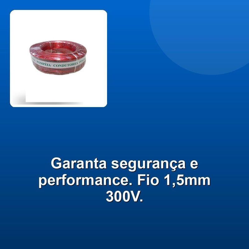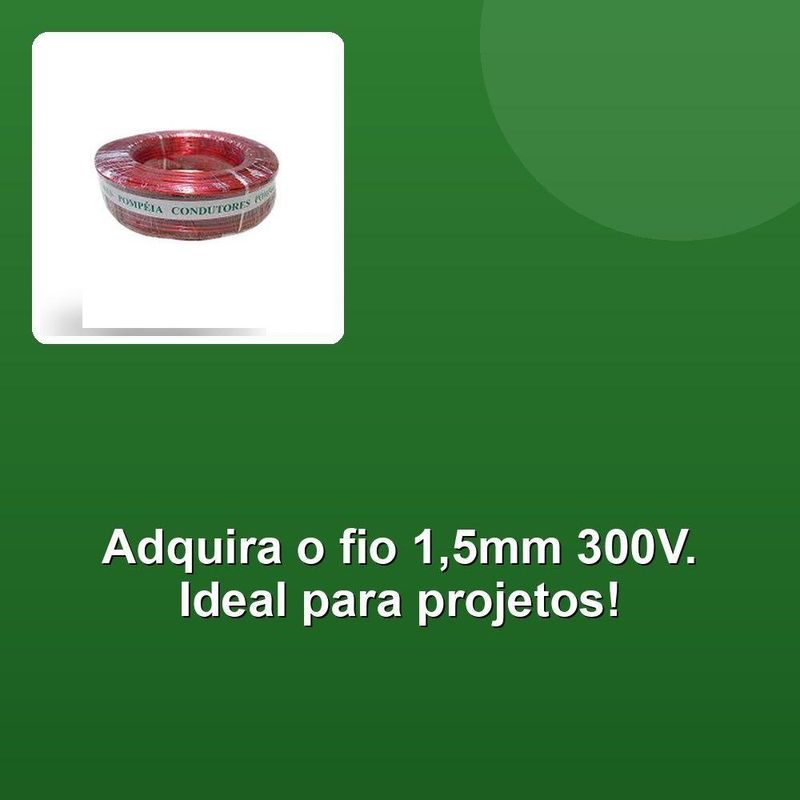 Fio Cabinho Auto Plastic Pompéia 1,5mm 300v Vermelho Com100mConstrua projetos robustos e seguros com o Fio Cabinho Auto Plastic Pompeia 1,50 mm 300V. Feito com materiais de alta qualidade, este fio garante a máxima performance em aplicações exigentes. Sua espessura de 1,50 mm e tensão de 300V o tornam ideal para a instalação de sistemas elétricos em automóveis, garantindo a condução eficiente de energia. A capa resistente de plástico garante maior durabilidade e proteção contra impactos, além de facilitar a identificação e organização dos fios.Compre com a certeza de adquirir um produto que se destaca pela excelência. Nossa paixão pela qualidade se reflete em cada etapa do processo, desde a seleção dos fornecedores até a entrega rápida e eficiente. Confiança e satisfação do cliente são pilares fundamentais para nós. Escolher esse fio é investir em segurança, durabilidade e performance para seus projetos.Construa projetos robustos e seguros com o Fio Cabinho Auto Plastic Pompeia 1,50 mm 300V. Feito com materiais de alta qualidade, este fio garante a máxima performance em aplicações exigentes. Sua espessura de 1,50 mm e tensão de 300V o tornam ideal para a instalação de sistemas elétricos em automóveis, garantindo a condução eficiente de energia. A capa resistente de plástico garante maior durabilidade e proteção contra impactos, além de facilitar a identificação e organização dos fios.Compre com a certeza de adquirir um produto que se destaca pela excelência. Nossa paixão pela qualidade se reflete em cada etapa do processo, desde a seleção dos fornecedores até a entrega rápida e eficiente. Confiança e satisfação do cliente são pilares fundamentais para nós. Escolher esse fio é investir em segurança, durabilidade e performance para seus projetos.