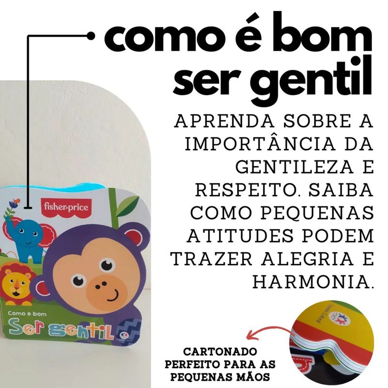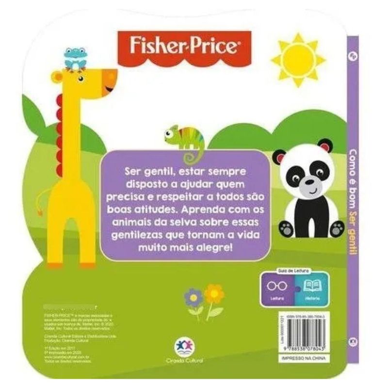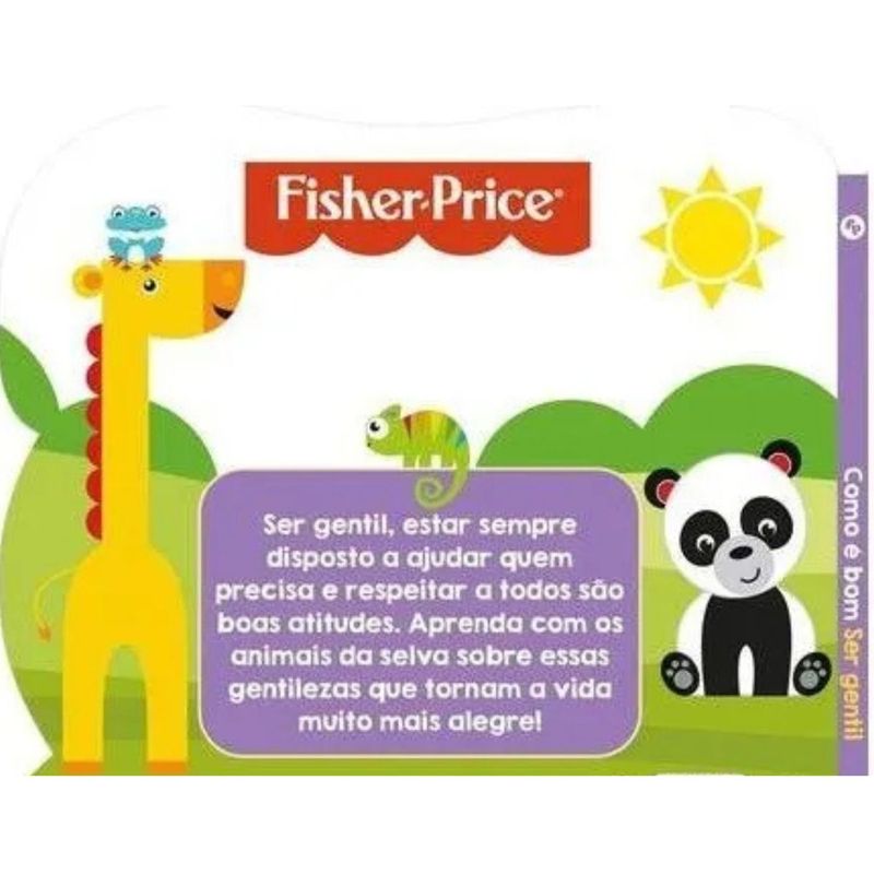 FISHER PRICE - COMO É BOM SER GENTIL - CIRANDA CULTURAL Ser gentil, estar sempre disposto a ajudar quem precisa e respeitar a todos são boas atitudes. Aprenda com os animais da selva sobre essas gentilezas que tornam a vida muito mais alegre!Editora: Ciranda CulturalEdição: 1, 2017Autor: Ciranda CulturalIdioma: PortuguêsPáginas: 10Dimensões: L 19.10 x A 21.50 x E 0.70ISBN: 9788538078043Coleção: Como é bomLinha Editorial: Ciranda Cultural - LicençasFaixa Etária: 0-3 anosAssuntos (tags): Animais, Rimas, GentilezaBISAC: Literatura Infantil / Literatura Infantil / Temas Sociais / Valores e VirtudesLinha de Produto: Cartonado recortadoEncadernação: Lombada quadradaAcabamento: Faca especialMaterial: Cartonado