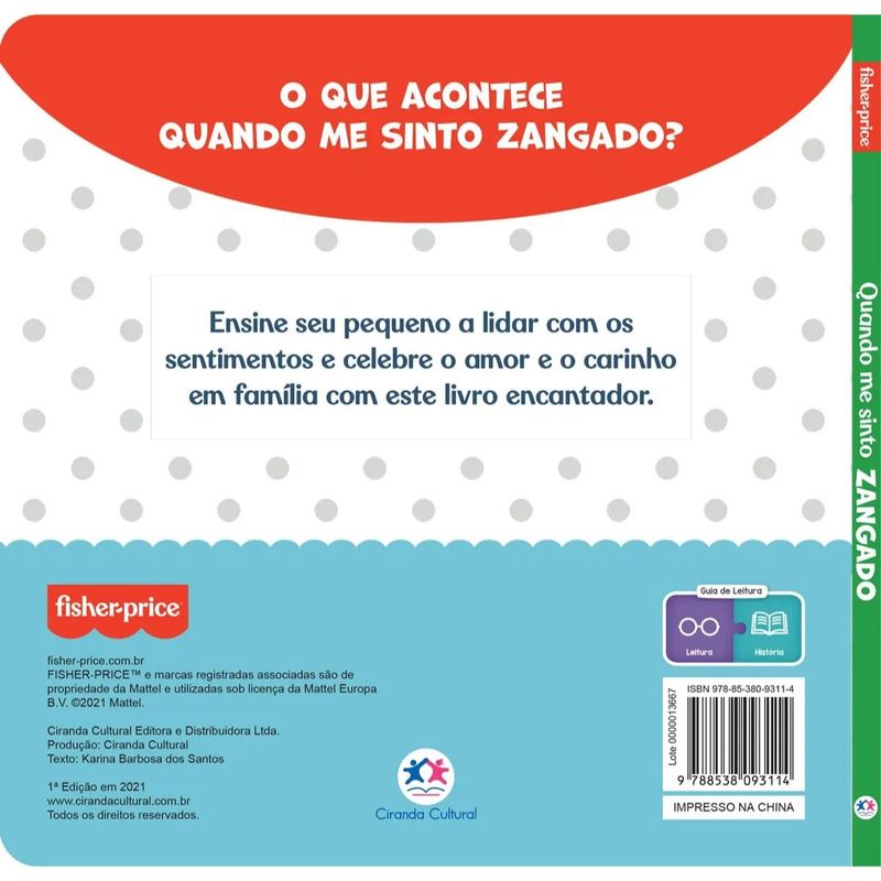 FISHER PRICE - QUANDO ME SINTO: ZANGADO - CIRANDA CULTURAL O que acontece quando me sinto zangado? Ensine seu pequeno a lidar com os sentimentos e celebre o amor e o carinho em família com este livro encantador.Editora: Ciranda CulturalEdição: 1, 2021Autor: Karina BarbosaIdioma: PortuguêsPáginas: 10Dimensões: L 18.00 x A 18.00 x E 0.70ISBN: 9788538093114Coleção: Mundinho da leituraLinha Editorial: Ciranda Cultural - LicençasFaixa Etária: + 4 anosAssuntos (tags): Sentimentos, Fisher, Price, Felicidade, TristezaBISAC: Literatura Infantil / Mídia Tie-inLinha de Produto: CartonadoEncadernação: Lombada quadradaAcabamento: Laminação brilhoMaterial: Cartonado