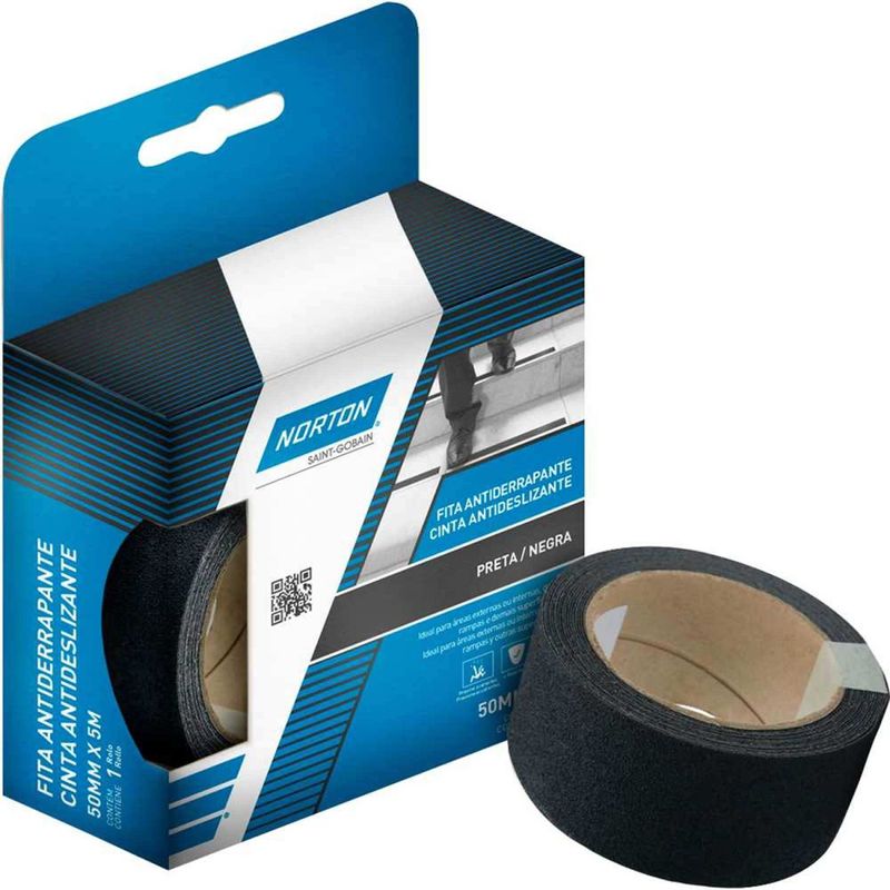 Fita Antiderrapante, 50 mm x 5 m, Preta, Q121 Norton OstenVonder - Conteúdo da embalagem: 1 Rolo de fita antiderrapante. Aplicação: Indicada para uso em degraus, rampas e pisos lisos de áreas internas. Destaques: Fita antiderrapante, feita em grão óxido de alumÃnio, é ideal para uso interno para proporcionar maior segurança no ambiente. Garantia - E (CDC): Garantia legal: 90 dias Referência: 78072749957 Largura x comprimento da fita antiderrapante: 50 mm x 5 m Material da fita antiderrapante: Lixa com adesivo Fotoluminescente: Não Massa aproximada (peso): 0,122 kg Cor: Preta Destaques Comercial: Fita antiderrapante com grão de óxido de alumÃnio, ideal para uso interno e aumento da segurança. Aplicação Comercial: Uso em degraus, rampas e pisos lisos de áreas internas. Características Gerais do Produto: Garantia: • 3 Meses