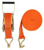FITA PARA PRENDER CARGA 5CM X 9,5M - Dimensões da Peça: 950 x 9,5 x 5,5cm - Dimensões da Embalagem: 31 x 8 x 34cm - Quantidade Master: 10 Peças - Dimensões Master: 65,1 x 33,3 x 28,3cm - Material: Aço carbono, PP 900D - Cor: - Fita: Laranja - Catraca e Gancho: Dourado - Tipo de Embalagem: Blister - Marca: Western - Origem: China - Largura da fita: 5cm - Espessura da fita: 2,5mm - Utilize para carga de até: 2 Toneladas. - Nuca exceda o limite de carga. - Comprimento total: 9,5m (fita+catraca+gancho). - Para prender: 1 - Prenda os ganchos e passe a fita pela carga. 2 - Introduza a fita através da abertura do centro da catraca, passando a fita por baixo desse eixo. Acione a catraca para cima e para baixo que ela enrole no eixo. 3 - Acione a catraca, até a fita ficar firme. 4 - Empurre a alavanca para baixo para travar. Assim a fixação está pronta. - Para liberar: 1- Puxe e segure a alça de Desengate (Release) e levante a catraca para a posição de aberturaGarantia do produto: 90 dias de garantia de acordo com o Código de Defesa do Consumidor + a Garantia do Fabricante