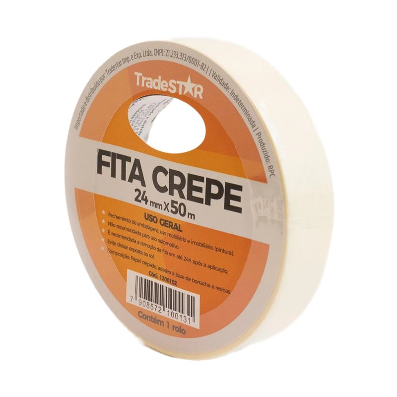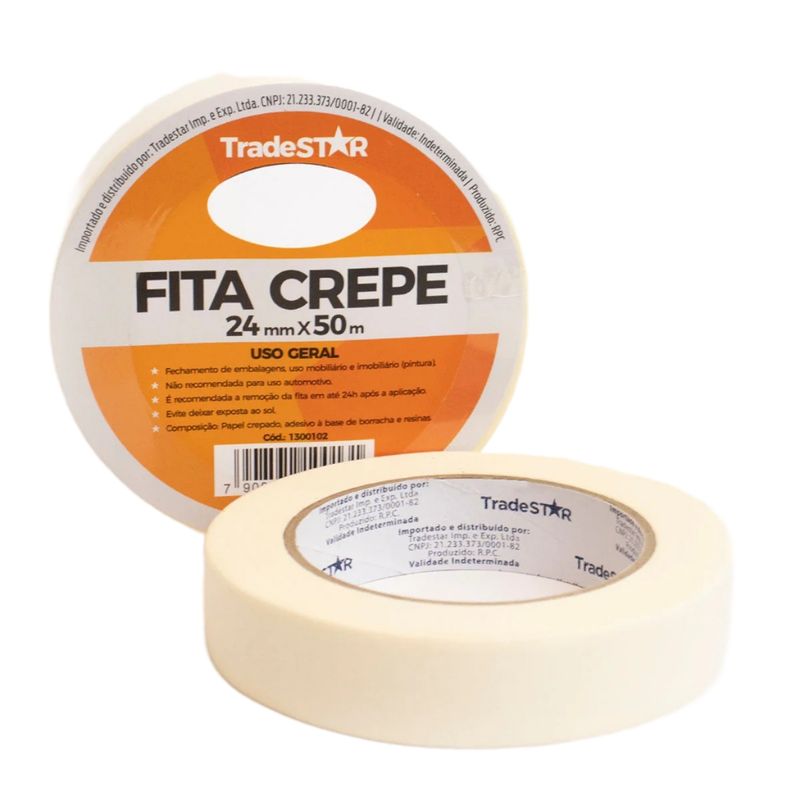 Fita Crepe Tradestar Uso Geral 24 mm x 50 MetrosA Fita Crepe Tradestar 24 mm x 50 m é uma ferramenta essencial para profissionais e entusiastas do faça-você-mesmo que buscam precisão, praticidade e eficiência em suas tarefas. Desenvolvida com papel crepe de alta qualidade e adesivo à base de resina e borracha, esta fita oferece excelente resistência e fácil manuseio, sendo ideal para pintura, empacotamento, fixação temporária e diversas aplicações de uso geral.Seu design permite um desenrolamento suave e aplicação rápida, aderindo perfeitamente a superfícies planas ou irregulares sem esforço. A Fita Crepe Tradestar adapta-se facilmente a curvas, cantos e texturas diversas, garantindo uma fixação uniforme e segura sem comprometer a estética ou integridade do material.Um dos grandes diferenciais desta fita é sua removibilidade limpa. Após a aplicação, a fita pode ser retirada sem deixar resíduos de cola ou danificar a superfície, desde que utilizada dentro do período recomendado de até 24 horas. Isso a torna perfeita para trabalhos de pintura em paredes, madeira, vidro ou superfícies delicadas, onde a proteção e a definição de bordas são fundamentais para um acabamento profissional.Além de sua aplicação em pintura, a fita crepe é útil para vedação temporária, organização de fios e embalagens, ou qualquer outra situação que exija adesão segura e fácil remoção. A Fita Crepe Tradestar combina resistência, flexibilidade e qualidade, sendo confiável tanto para uso doméstico quanto profissional. Seu acabamento branco clássico facilita a visualização das áreas cobertas, auxiliando no controle e precisão durante a aplicação. Com esta fita, você otimiza tempo, evita desperdícios e garante resultados consistentes e limpos em cada projeto.Especificações- Dimensões: 24 mm x 50 Metros- Cor: Branca- Material: Papel crepe com adesivo à base de resina e borracha- Aplicação: Pintura, embalagem, fixação temporária e uso geral- Recomendação: Remover em até 24 horas para pintura e superfícies delicadasItens inclusos- 1 Rolo Fita Crepe 24 mm x 50 Metros para Uso Geral TradestarGarantia- 03 meses com o Fabricante