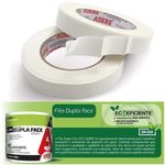 Fita Dupla Face 19mmx 30m ECO DK350 - Adere A Fita Dupla Face ECO ADERE é composta por um dorso de papel branco e adesivo de ambos os lados, além de um liner protetor que facilita a aplicação. Tem excelente adesão inicial e prolongada, e foi especialmente desenvolvida para trabalhos escolares e artesanais de papelaria em geral, contendo componentes que favorecem a qualidade e agilidade na aplicação. Seu dorso em papel permite fácil rasgamento, facilitando sua utilização, além de ótima conformabilidade em superfícies texturizadas, como papel e papelão, inclusive papelão reciclado, pode ser utilizada para fixação temporária de identificação, como placas e recados pontuais. A Fita Dupla Face ECO ADERE possui o conceito Ecoeficiente, que tem maior cuidado com o meio ambiente, desde sua produção, até a aplicação. Um produto 100% livre de solventes, produzido com 60% de materiais de fontes renováveis, e possui parte de sua embalagem proveniente de materiais reciclados. Características: - Fita Dupla Face de Papel - Conceito Ecoeficiente - Fácil remoção do Liner - Excelente Adesão inicial e prolongada - Ideal para Papelaria e Trabalhos artesanais - Ótima conformidade em diversas superfícies - Indicada para uso geral - Dimensões: 19mm x 30m Embalagem com 01 unidade Imagens meramente ilustrativas, as cores podem variar em cada tela ou monitor.