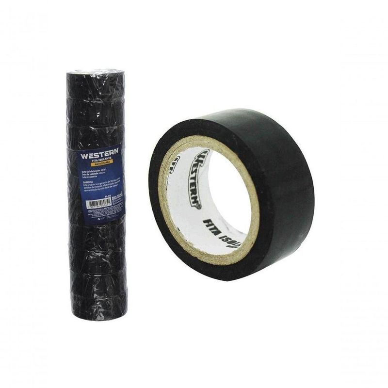 Fita Isolante Western Anti-chamas 5m X 19mm Com 10 UnidadesDescricao Contem: 10 rolos 19 mm x 5 m. (cada rolo) - Caracteristicas: Antichama - Cuidados: Armazene a fita em local seco, arejado e ao abrigo da luz solar direta. O produto deve ser mantido nas partes medianas das prateleiras e em ambiente protegido, na embalagem original. A temperatura de estocagem nao deve ser exceder a 30C por longos periodos. Manter fora do alcance de criancas. *Imagens meramente ilustrtivas. Especificacao Tecnica - Dimensoes da Peca: 4,6 x 1,8cm - Dimensoes da Embalagem: 19,5 x 4,5 x 4,5cm - Quantidade Master: 50 Pecas - Dimensoes Master: 48 x 25,5 x 21cm - Material: Filme de PVC, Adesivo a base de PSA - Cor: Preta - Tipo de Embalagem: Shrink - Marca: Western - Espessura: 0,13mm - Contem: 10 rolos 19 mm x 5 m. (cada rolo)Descricao Contem: 10 rolos 19 mm x 5 m. (cada rolo) - Caracteristicas: Antichama - Cuidados: Armazene a fita em local seco, arejado e ao abrigo da luz solar direta. O produto deve ser mantido nas partes medianas das prateleiras e em ambiente protegido, na embalagem original. A temperatura de estocagem nao deve ser exceder a 30C por longos periodos. Manter fora do alcance de criancas. *Imagens meramente ilustrtivas. Especificacao Tecnica - Dimensoes da Peca: 4,6 x 1,8cm - Dimensoes da Embalagem: 19,5 x 4,5 x 4,5cm - Quantidade Master: 50 Pecas - Dimensoes Master: 48 x 25,5 x 21cm - Material: Filme de PVC, Adesivo a base de PSA - Cor: Preta - Tipo de Embalagem: Shrink - Marca: Western - Espessura: 0,13mm - Contem: 10 rolos 19 mm x 5 m. (cada rolo)