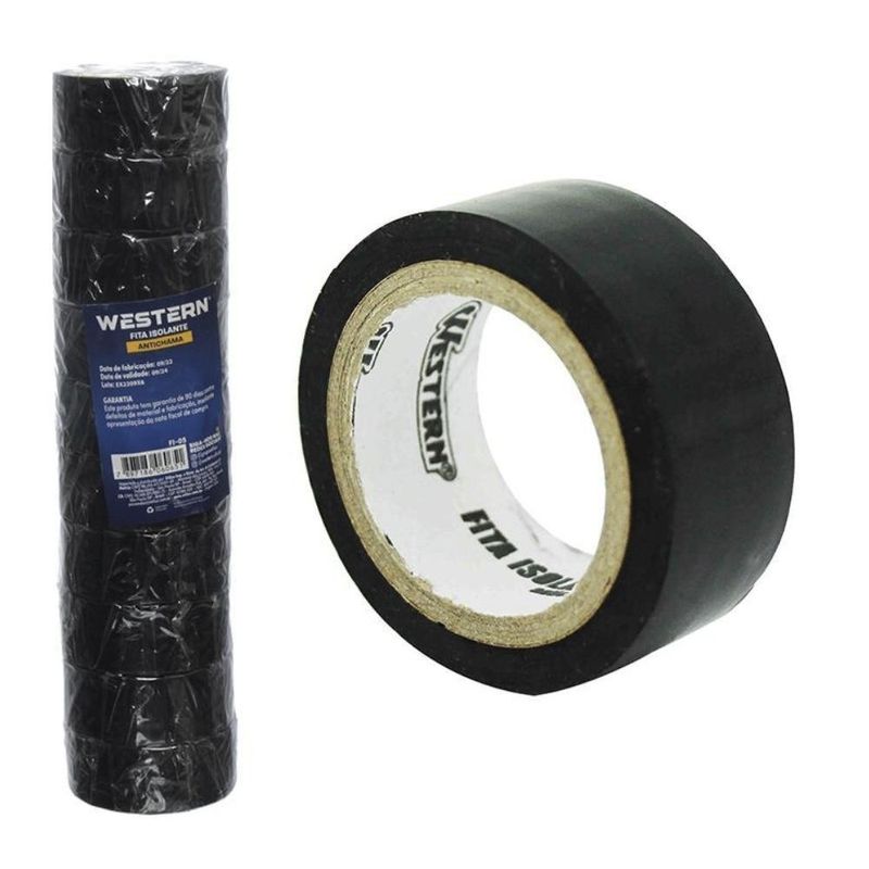 Fita Isolante Western Anti-chamas 5m X 19mm Com 10 UnidadesDescricao Contem: 10 rolos 19 mm x 5 m. (cada rolo) - Caracteristicas: Antichama - Cuidados: Armazene a fita em local seco, arejado e ao abrigo da luz solar direta. O produto deve ser mantido nas partes medianas das prateleiras e em ambiente protegido, na embalagem original. A temperatura de estocagem nao deve ser exceder a 30C por longos periodos. Manter fora do alcance de criancas. *Imagens meramente ilustrtivas. Especificacao Tecnica - Dimensoes da Peca: 4,6 x 1,8cm - Dimensoes da Embalagem: 19,5 x 4,5 x 4,5cm - Quantidade Master: 50 Pecas - Dimensoes Master: 48 x 25,5 x 21cm - Material: Filme de PVC, Adesivo a base de PSA - Cor: Preta - Tipo de Embalagem: Shrink - Marca: Western - Espessura: 0,13mm - Contem: 10 rolos 19 mm x 5 m. (cada rolo)Descricao Contem: 10 rolos 19 mm x 5 m. (cada rolo) - Caracteristicas: Antichama - Cuidados: Armazene a fita em local seco, arejado e ao abrigo da luz solar direta. O produto deve ser mantido nas partes medianas das prateleiras e em ambiente protegido, na embalagem original. A temperatura de estocagem nao deve ser exceder a 30C por longos periodos. Manter fora do alcance de criancas. *Imagens meramente ilustrtivas. Especificacao Tecnica - Dimensoes da Peca: 4,6 x 1,8cm - Dimensoes da Embalagem: 19,5 x 4,5 x 4,5cm - Quantidade Master: 50 Pecas - Dimensoes Master: 48 x 25,5 x 21cm - Material: Filme de PVC, Adesivo a base de PSA - Cor: Preta - Tipo de Embalagem: Shrink - Marca: Western - Espessura: 0,13mm - Contem: 10 rolos 19 mm x 5 m. (cada rolo)