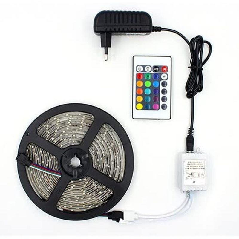 Fita Led Rgb 5050 Rolo 5m Com Fonte 12v 5a E Controle Remoto A Fita de led luminosa pode ser usada em diversos ambientes, seja na decoração residencial em gessos, sancas, para evidenciar móveis, quadros de fotografias ou eletrodomésticos, automóveis e até em estabelecimentos comerciais para proporcionar maior visibilidade de produtos e decorar vitrines. Fita Luminosa de Led: Leve essa tendência para o seu espaço A fita led se tornou tendência justamente pela praticidade e facilidade de instalação onde qualquer pessoa pode manuseá-la para incrementar decorações e ambientes transformando o visual de cômodos. Disponível em diversas cores a fita de led é confeccionada em material que lhe permite maior flexibilidade podendo ser ajustada e posicionada em diversos formatos e locais. Esse equipamento vem acompanhado de fonte para fornecimento de energia e é de baixo consumo. O mais bacana desse tipo de dispositivo é que pode ser ligado em baterias 12V como de carro, barcos ou outros aparelhos permitindo ainda maior praticidade e comodidade em seu uso, podendo ser manuseada em locais que não possuem fornecimento direto ou fácil acesso a rede elétrica, como acampamentos por exemplo. Além de todas essas características incríveis a fita luminosa possui dupla face facilitando assim sua colagem em paredes e superfícies diversas e a fita também pode ser cortada em partes, a cada 3 leds possui uma marca de corte na fita para facilitar e que poderão continuar sendo alimentadas pela mesma fonte de energia, visto que cada fonte pode ligar até 5 metros de fita. Especificações técnicas: Consumo: 14,4 W por metro. Tensão da Fita: 12 Volts Tensão da Fonte: Saída: 12 Volts / Entrada: Bivolt (100V - 240V) Cor da Luz: RGB Luminosidade: 1330 Lumens por metro, com variação de 10% Ângulo de iluminação: 120º Índice de proteção: IP20 Vida útil: 40.000 horas Medidas: 1,5cm X 500cm Peso: 180 Gramas Itens inclusos: Fita de LED e fonte. Garantia: 1 ano