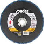 Flap Disc 7 G50 Costado Fibra Cônico Inox VonderConteúdo da embalagem1 Disco de desbaste/acabamento flap-discAplicações e dicas de usoIndicado para desbaste e acabamento em aço inox, alumínio, metais ferrosos e não ferrosos com esmerilhadeiras angularesDestaques e diferenciaisPermite atividades de desbaste e acabamento ao mesmo tempo, eliminando a troca de discos. Proporciona menor vibração e ruído comparado com o disco de desbaste convencional. Seu formato cônico permite um melhor aproveitamento do disco aumentando o rendimento.DETALHES TÉCNICOSDiâmetro externo do disco de desbaste/ acabamento flap-disc:7 - 177 mmDiâmetro do furo do disco de desbaste/ acabamento flap-disc:7/8 - 22,2 mmGrão:G 50Tipo de costado:FibraTipo do perfil do disco de desbaste/acabamento flap-disc:CônicoTipo do grão abrasivo:Óxido de zircônioRotação máxima (rpm):8500 rpmVelocidade periférica:80 m/sNorma de referência:ABNT NBR 15635 / ABNT NBR 16195 Produto: Flap | Marca: Vonder | Modelo detalhado: Flap disc 7 g50 costado fibra cônico Para aço carbono e inox | Tipo de discos e rebolos: De desbaste | Número de dentes: 0 | Modelo: 7893946101732 | Diâmetro central: 7 | Diâmetro do disco de corte: 7 | É escova: Não | MPN: 7893946101732 | Cor: Azul e Preto | Tipo de ferramenta: Flap | Código universal de produto: 7893946101732 | É kit: Não | Grão: G 50