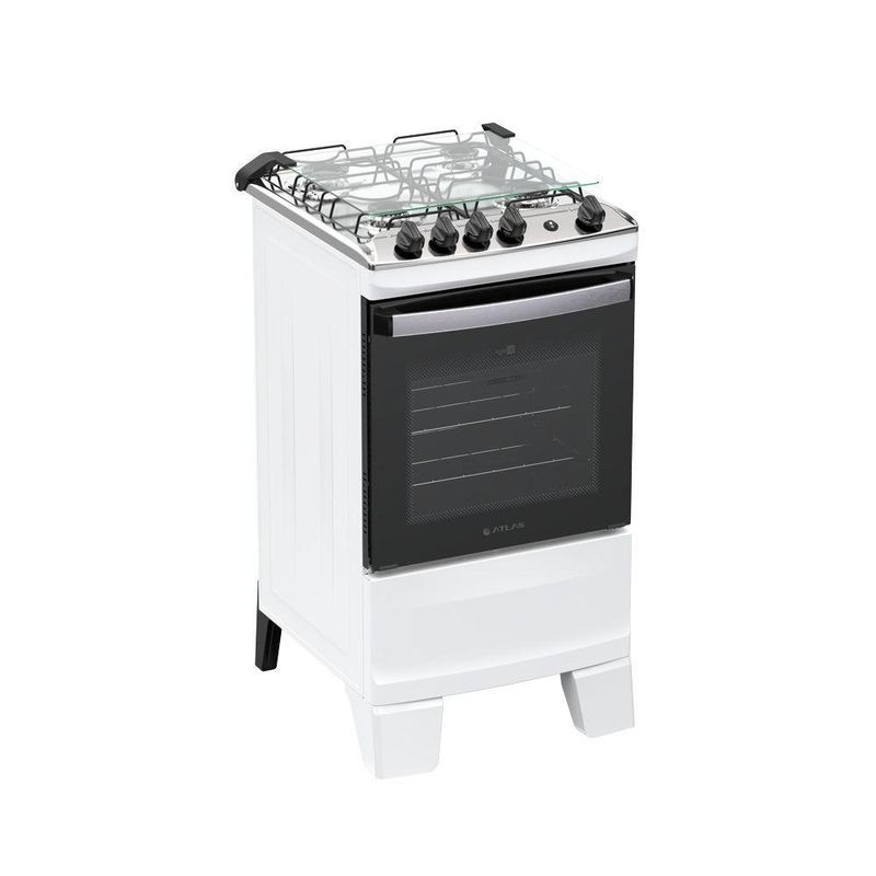 Fogão 4 Bocas Atlas Agile Up Automático Mesa Inox Branco BivoltFogão 4 bocas Atlas Agile Up Automático Mesa Inox BrancoNo dia a dia corrido, faz diferença contar com um fogão moderno e resistente, que acompanha seu ritmo e transforma o visual da cozinha. O Agile Up se destaca por isso.O fogão Agile Up une robustez e design, com acabamento refinado, linhas harmônicas e puxador em alumínio escovado, oferecendo elegância e firmeza no uso diário — o equilíbrio entre funcionalidade e estética.Com duas prateleiras deslizantes, visor amplo e luz interna, você pode assar diferentes pratos ao mesmo tempo, com mais praticidade e controle, sem precisar abrir o forno.E para quem cozinha todos os dias, durabilidade não é detalhe: é necessidade. Os queimadores reforçados do Agile Up são mais duráveis e ágeis no preparo. A base com pés altos encara sua rotina com firmeza.O Agile Up Inox é assim: feito para durar, com estilo e performance.DiferenciaisMais moderno e resistente: acabamento refinado e design marcanteDuas prateleiras deslizantes: mais praticidade no uso do fornoPuxador em alumínio escovado: firmeza e sofisticaçãoVidro interno do forno removível: facilita a limpezaQueimadores maiores e reforçados: mais durabilidade e agilidadeVisor amplo e luz interna: mais controle no preparo das receitasPés altos e já montados: praticidade no dia a diaTampa de vidro: proteção contra respingosBotões removíveis: limpeza fácil e rápidaForno Limpa Fácil: limpeza mais práticaCaracterísticas TécnicasMarca: AtlasModelo: Agile UpTipo: De PisoCor: BrancoAlimentação: GásTensão: BivoltMesa e AcendimentoTipo de mesa: InoxTrempe: Dupla de arameAcendimento: AutomáticoTampa/Testeiro: Tampa de vidroBotões removíveis: SimQueimadoresQuantidade: 4Tripla/Dupla chama: NãoPotência total: 7,34 kWFornoCapacidade: 48LPotência: 1,78 kWAcabamento interno: Esmalte Limpa FácilPrateleiras: 2 deslizantesLuz interna: SimLâmpada: 220VVidro da porta: Duplo temperadoVisor: TotalVálvula de segurança: SimDimensões e PesoAltura: 93,4 cmLargura: 49,1 cmProfundidade: 57,6 cmPeso: 20,5 kgGarantia1 ano (3 meses de garantia legal + 9 meses para defeitos de fabricação)Observações ImportantesConferir o produto no ato da entrega. Em caso de avarias, recuse o recebimentoInformações podem sofrer alterações sem aviso prévioImagens meramente ilustrativas