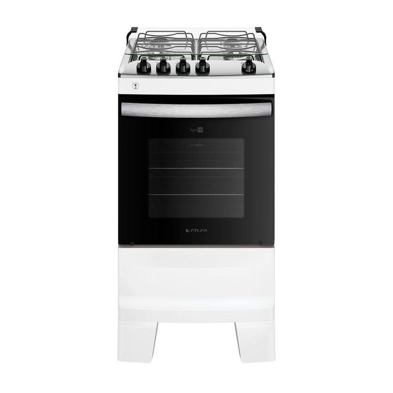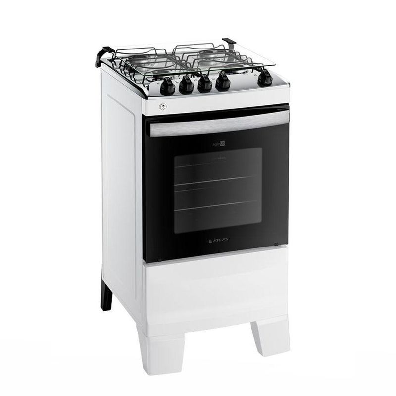 Fogão 4 Bocas Atlas Agile Up Com Mesa Inox E Acendimento Automatico Branco BivoltModernize sua cozinha com o Fogão Atlas Agile Up. Este modelo de 4 bocas se destaca pela sua elegante mesa de vidro temperado com borda infinita e controle superior (top control). O forno de 50 litros possui acabamento Limpa Fácil e duas grades deslizantes, oferecendo praticidade para o dia a dia. Com um design funcional que inclui acendimento automático e trempes robustas de ferro fundido, ele é a escolha perfeita para quem busca eficiência e estilo.Principais Características:Mesa de Vidro Temperado: Design moderno com borda infinita e controle superior (top control), que além de elegante, é muito fácil de limpar.Trempes de Ferro Fundido: Grades individuais com 6 pontos de apoio, garantindo máxima estabilidade e para suas panelas durante o preparo.Forno Prático de 50L: Interior com acabamento Limpa Fácil, porta de vidro duplo, luz interna (lâmpada inclusa) e duas grades deslizantes para maior versatilidade no preparo de assados. e Conveniência: Possui acendimento automático, sistema corta/bloqueia gás para maior e botões removíveis que facilitam a higienização.Design Funcional: Conta com puxador ergonômico em alumínio escovado e pés altos e robustos, que facilitam a limpeza do piso sob o fogão.Controle de Temperatura: Ajuste simples e ágil da temperatura do forno, variando de 180°C a 290°C.Especificações Técnicas:Marca: AtlasLinha: Agile UpCor: BrancoVoltagem: BivoltTipo de Instalação: Fogão de PisoQuantidade de Bocas: 4Material da Mesa: Vidro TemperadoTipo de Acendimento: AutomáticoFuncionamento: GásCapacidade do Forno: 50 LitrosAcabamento do Forno: Limpa FácilLuz no Forno: Sim (lâmpada inclusa)Trempes: Individual de ferro fundido com 6 pontos de apoioGrades do Forno: 2 grades deslizantesSistema Corta Gás: SimEficiência Energética: APotência dos Queimadores: 2x 2,0kW (Família) e 2x 1,7kW (Ramal)Dimensões do Produto (AxLxP): 91,7 x 48 x 59,5 cmPeso: 26,5 kg