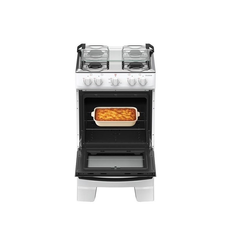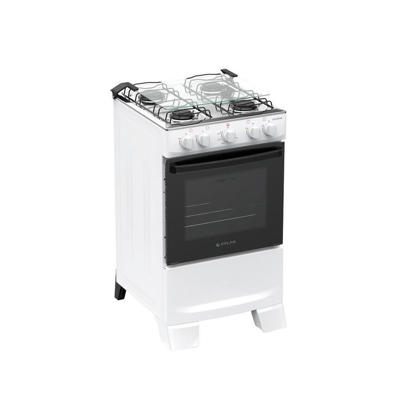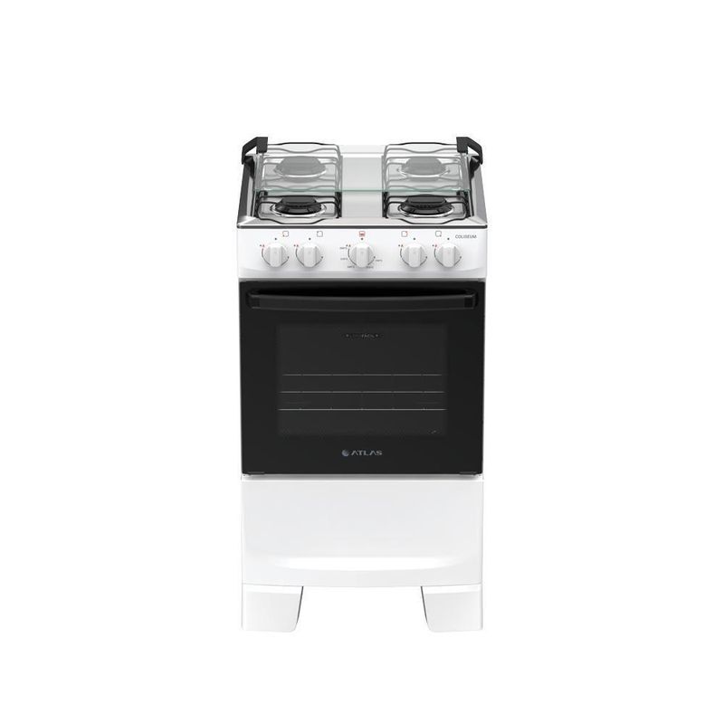 Fogão 4 Bocas Atlas Coliseum Plus Mesa De Inox A Gás Manual BrancoFogão Coliseum Plus 4 BocasO Fogão Coliseum Plus 4 Bocas é a escolha certa para quem busca durabilidade no dia a dia. Bonito e resistente, está disponível nas cores preto e branco, combinando com todas as cozinhas. E o melhor: já vem com pés altos montados.Com forno e queimadores Limpa Fácil, o Coliseum simplifica a limpeza e mantém o bom aspecto por muito mais tempo. Pensando em facilitar a sua rotina, o vidro interno do forno removível ajuda a manter o brilho sem esforço, enquanto o visor amplo permite acompanhar as receitas sem precisar abrir o forno.O puxador de aço resistente mostra que ele foi feito para durar. Um fogão que aguenta o uso diário sem perder o desempenho, oferecendo a durabilidade que sua cozinha precisa.E como todo fogão Atlas, o Coliseum carrega a confiança de uma marca presente há décadas nos lares brasileiros, com produtos que funcionam bem, duram e tornam o dia a dia muito mais tranquilo.Atributos e Benefícios:Mais resistente e durável: feito para acompanhar a sua rotinaForno e queimadores Limpa Fácil: praticidade para uma limpeza mais completaVidro interno do forno removível: fácil de retirar e limparVisor do forno grande: permite acompanhar o preparo sem abrir a portaPuxador de aço: resistente, e confortávelPés altos já montados: mais praticidade e facilidade na limpeza do chãoTampa de vidro: evita respingos e mantém a cozinha limpaBotões removíveis: facilitam a limpeza do dia a diaForno espaçoso: ideal para diferentes tipos e tamanhos de receitasEspecificações TécnicasMarca: AtlasModelo: Coliseum PlusTipo de montagem: De pisoCores: Branco e PretoFabricação: Alimentação: GásTipo de gás: GLPConversível para gás natural: SimVoltagem: Não háCor: BrancoAcendimento: Manual (isqueiro ou fósforo)Posição dos manípulos: Front ControlTipo de manípulos: PlásticoBotões removíveis: SimTampa: SimTrempes: Dupla de arameQuantidade: 4 bocas2 queimadores rápidos de 2,0 kW2 queimadores semi-rápidos de 1,67 kWPotência total: 7,34 kWSistema corta/bloqueia gás: SimCapacidade: 48 litrosVidro do forno: Vidro duploVisor: Com visorPotência do forno: 1,78 kWAcabamento interno: Esmalte Limpa FácilPrateleiras: 1 deslizanteGrill: NãoLâmpada: NãoVálvula de : SimDimensões do produto (L x A x P): 49,2 x 88,8 x 55,2 cmDimensões do produto embalado (L x A x P): 49,6 x 89,5 x 56,5 cmPeso do produto: 15,9 kgPuxador: Aço pintadoTamanho do puxador: PequenoTimer: NãoGarantia: 12 meses contra de fabricação