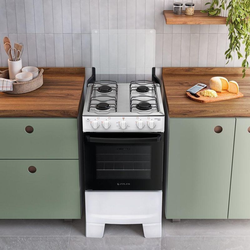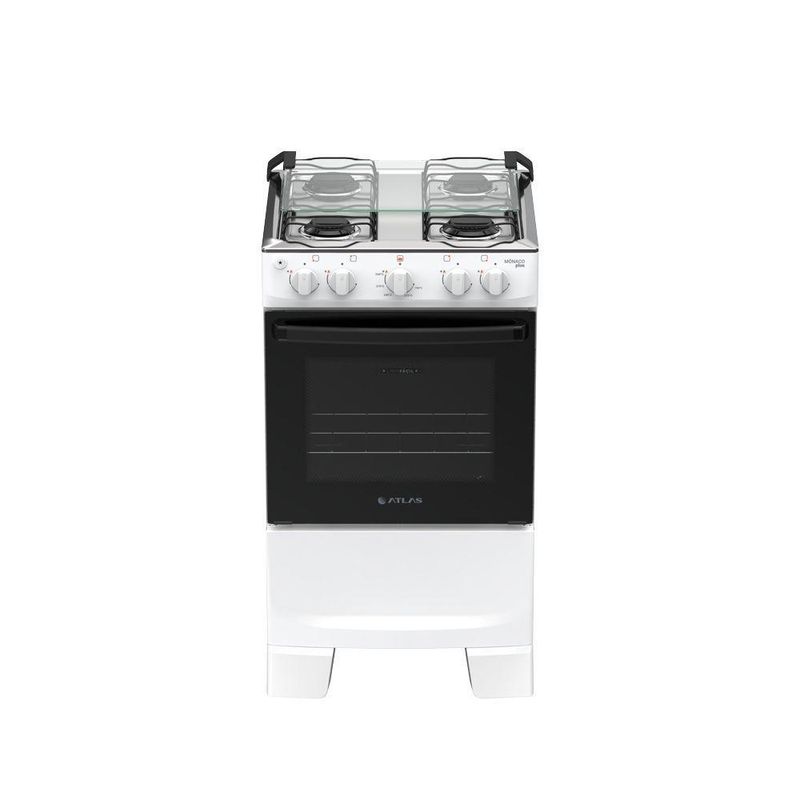 Fogão 4 Bocas Atlas Mônaco Plus Automático Mesa Inox Branco BivoltFogão 4 bocas Atlas Mônaco Plus Automático Mesa Inox BrancoQuem busca praticidade e durabilidade encontra no Mônaco Plus a combinação perfeita. Fácil de usar, robusto e confiável, ele tem detalhes que realmente fazem diferença na rotina da cozinha.Na limpeza, por exemplo, tudo fica mais simples. Com queimadores e forno Limpa Fácil, a sujeira não acumula e você gasta menos tempo limpando. O vidro interno do forno removível facilita para uma limpeza mais completa.Na hora de acender, é praticidade total: nada de fósforo ou isqueiro. Com o acendimento automático, basta girar, clicar e pronto, chama acesa rapidinho.O Mônaco Plus também foi feito para ser firme e seguro: tem grade de aço e pés altos. E o melhor de tudo ele já vem montado.E como todo fogão Atlas, ele traz confiança de uma marca com tradição no Brasil: durabilidade, modernidade e produtos feitos para facilitar a sua vida.Mônaco Plus traz o que você precisa no dia a dia, do jeito Atlas, fácil de usar, robusto e confiável.Principais CaracterísticasMais bonito, resistente e versátilNovos detalhes que combinam com todas as cozinhas.Forno e queimadores limpa fácilPraticidade que ajuda a não acumular sujeira.Acendimento prático: girou, clicou e acendeuSem precisar de fósforo ou isqueiro. Rápido e fácil de usar.Vidro interno do forno removívelFácil de tirar e ajuda a manter o forno limpo por completo.Visor do forno grandeVeja a sua receita sem precisar abrir o forno.Puxador de açoForte, seguro e não escorrega na mão.Pés altos que já vêm montadosFirm no uso e práticos na faxina.Tampa de vidroSua parede protegida de respingos e sujeiras.Botões removíveisTirou, limpou sem esforço.Capacidade do fornoCabe formas de variados tamanhos e formatos, desde bolos até lasanheiras.Características TécnicasMarca: AtlasModelo: Mônaco PlusTipo: De PisoCor do Produto:BrancoTensão: BivoltTipo de Mesa: InoxTrempe: Dupla de ArameAcendimento: AutomáticoTampa Mesa: Tampa de VidroBotões removível: SimQuantidade de Queimadores: 4Tripla/Dupla chama: NãoPotência: 7,34 KWCapacidade do Forno: 48LAlimentação: GásPotência Forno: 1,78KWAcabamento Interno do Forno: Esmalte Limpa Fácil1 Prateleiras: 1 DeslizanteLuz no Forno: NãoLâmpada: NãoVidro porta do forno: Vidro duplo temperadoVisor porta do forno: PequenoVálvula de segurança do forno: SimAltura: 88,8 cmLargura: 49,2cmProfundidade:55,2 cmPeso do produto: 16,35KgGarantia do Produto: 1 ano (3 meses de garantia legal e 9 meses para defeitos de fabricação).Importante: Imprescindível à conferência no ato da entrega. Em caso de anormalidade, recuse o recebimento. Todas as informações divulgadas são de responsabilidade do fabricante, podendo sofrer alterações sem nenhum aviso prévio.Imagens meramente ilustrativas.Fogão 4 bocas Atlas Mônaco Plus Automático Mesa Inox Branco