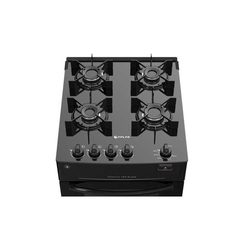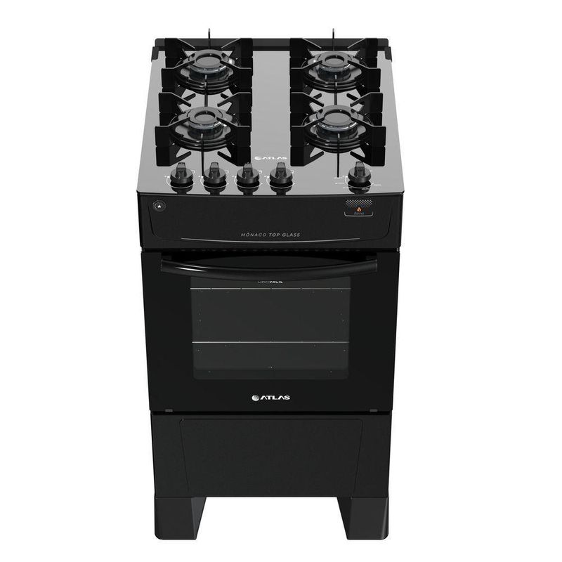 Fogão 4 Bocas Atlas Mônaco Top Glass com Acendimento Automático - PretoO Fogão Atlas Mônaco Top Glass é ideal para quem busca beleza e praticidade na cozinha. Com uma mesa de vidro elegante e funcionalidades modernas, ele traz sofisticação e facilidade de limpeza ao seu dia a dia.Características:Marca: AtlasCor: PretoCódigo: 300000708Voltagem: Bivolt (127V/220V)Linha: Mônaco Top GlassInstalação: Fogão de PisoQuantidade de Bocas: 4Funcionamento: GásCapacidade do Forno: 50 LitrosAcendimento: Automático TotalPotência dos Queimadores:2 Queimadores Ramal: 1,7 kW2 Queimadores Família: 2,0 kWAcabamento do Forno: Limpa FácilMesa: Vidro Temperado Sem BordasTrempes: Individuais e RobustasManípulos: Removíveis e na Base da MesaSistema de Segurança: Bloqueia GásEficiência Energética: AltaGrade do Forno: Deslizante com 2 Regulagens de AlturaDimensões Aproximadas:Internas do Forno (LxAxP): 37 cm x 30 cm x 45 cmExternas do Produto (LxAxP): 48 cm x 89 cm x 59,5 cmPeso Aproximado: 23 kg: 12 meses contra defeitos de fabricação, conforme normas do fabricante.