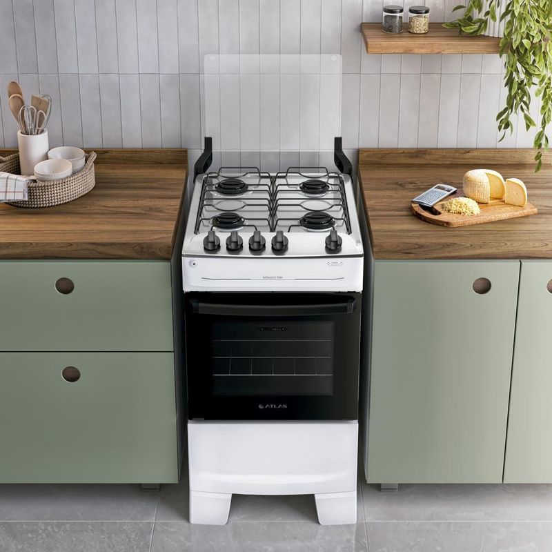 O Mônaco Top une praticidade e durabilidade para o dia a dia da sua cozinha. Fácil de usar e com detalhes que realmente fazem a diferença na rotina, ele foi feito para durar, trazendo a facilidade que a sua vida precisa. Os botões no topo da mesa garantem um visual moderno e controle prático. E para combinar com a sua casa, ele está disponível nas versões preto, branco e na nova cor titanium, que se destaca pelo visual diferenciado. Para ter mais praticidade no dia a dia, a Atlas pensou e fez: forno e queimadores Limpa Fácil, que simplificam a faxina e ajudam você a ganhar tempo no dia a dia. Além disso, os pés altos já vêm montado e conta com o acendimento automático na hora de acender: é só girar, clicar e pronto, chama acesa em segundos. Mais do que um fogão, o Mônaco Top carrega a confiança de quem entende a cozinha do brasileiro há décadas. Uma tradição que se renova a cada produto, sempre pensando em facilitar a sua vida. O Mônaco Top é bonito, resistente e prático, do jeito que a sua cozinha merece. Atributos e Benefícios: -Mais bonito, resistente e versátil - Novos detalhes que combinam com todas as cozinhas.-Botões no topo da mesa - Visual moderno e controle prático.-Forno e queimadores limpa fácil - Praticidade que ajuda em uma limpeza mais completa.-Acendimento prático: girou, clicou e acendeu - Sem precisar de fósforo ou isqueiro. Rápido e fácil de usar.-Vidro interno do forno removível - Fácil de tirar, ideal para manter o forno limpo sem esforço.-Visor do forno grande - Veja a sua receita sem precisar abrir o forno.-Puxador de aço - Forte, seguro e não escorrega na mão.-Pés altos que já vêm montados - Firmes no uso e práticos na faxina.-Tampa de vidro - Sua parede protegida de respingos e sujeiras.-Botões removíveis - Tirou, limpou sem esforço.