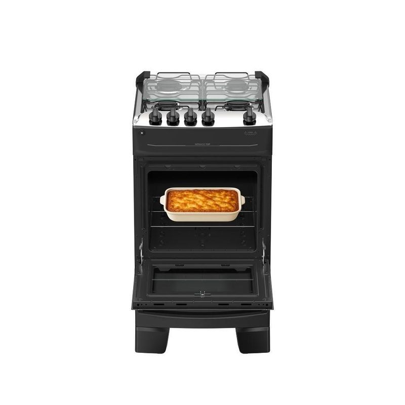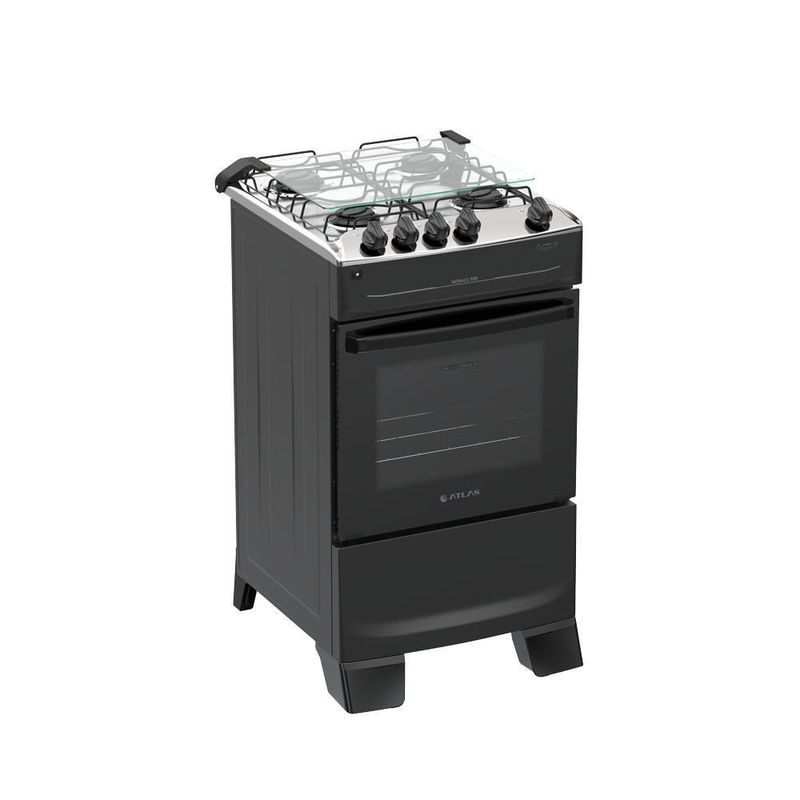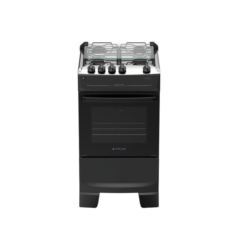 Fogão 4 Bocas Atlas Mônaco Top Mesa De Inox A Gás Preto BivoltO Mônaco Top une praticidade e durabilidade para o dia a dia da sua cozinha. Fácil de usar e com detalhes que realmente fazem a diferença na rotina, ele foi feito para durar, trazendo a facilidade que a sua vida precisa.Os botões no topo da mesa garantem um visual moderno e controle prático.E para combinar com a sua casa, ele está disponível nas versões preto, branco e na nova cor titanium, que se destaca pelo visual diferenciado.Para ter mais praticidade no dia a dia, a Atlas pensou e fez: forno e queimadores Limpa Fácil, que simplificam a faxina e ajudam você a ganhar tempo no dia a dia. Além disso, os pés altos já vêm montado e conta com o acendimento automático na hora de acender: é só girar, clicar e pronto, chama acesa em segundos.Mais do que um fogão, o Mônaco Top carrega a confiança de quem entende a cozinha do brasileiro há décadas. Uma tradição que se renova a cada produto, sempre pensando em facilitar a sua vida.O Mônaco Top é bonito, resistente e prático, do jeito que a sua cozinha merece. Atributos e Benefícios:- Mais bonito, resistente e versátil - Novos detalhes que combinam com todas as cozinhas.- Botões no topo da mesa - Visual moderno e controle prático.- Forno e queimadores limpa fácil - Praticidade que ajuda em uma limpeza mais completa.- Acendimento prático: girou, clicou e acendeu - Sem precisar de fósforo ou isqueiro. Rápido e fácil de usar.- Vidro interno do forno removível - Fácil de tirar, ideal para manter o forno limpo sem esforço.- Visor do forno grande - Veja a sua receita sem precisar abrir o forno.- Puxador de aço - Forte, seguro e não escorrega na mão.- Pés altos que já vêm montados - Firmes no uso e práticos na faxina.- Tampa de vidro - Sua parede protegida de respingos e sujeiras.- Botões removíveis - Tirou, limpou sem esforço. Dados Técnicos:Marca: Atlas Modelo: Mônaco Top Cores: Branco, Preto, Titanium Cor: PretoVoltagem: Bivolt Tipo de Montagem: De Chão Tipo de Gás: GLP Conversão para gn: Sim Alimentação: Gás Tipo de Mesa: Mesa de Inox Trempe: Dupla de Arame Acendimento: Automático Tampa mesa: Tampa de Vidro Posição manípulos: Top Control Manípulo removível: Sim Quantidade de Queimadores: 4 Potência dos Queimadores: 2Q Rápido de 2,0kW e 2Q Semi-rápido de 1,67kW Potência dos queimadores (kW): 7,34 Capacidade do forno em (L): 48 Litros Grill: Não Potência Forno (kW): 1,78 kW Acabamento Interno do Forno: Esmalte Limpa Fácil Prateleiras: 1 Deslizante Luz no Forno: Não Lâmpada: Não Vidro porta do forno: Vidro duplo temperado Puxador: Aço Pintado Visor porta do forno: Total Válvula de segurança do forno: Sim Dimensões do Produto (largura x altura x profundidade) em cm: 49,1 x 90 x 57,8 Dimensões do Produto Embalado (largura x altura x profundidade) em cm: 50 x 91,3 x 60 Peso do produto sem embalagem: 17 Kg Peso da embalagem do vendor: 19000 g Largura da embalagem do vendor: 50 cm Altura da embalagem do vendor: 91 cm Comprimento da embalagem do vendor: 60 cm Tipo de forno: Com visor