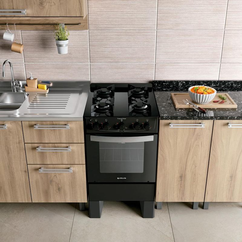 O Fogão Atlas Tropical Glass com mesa de vidro combina praticidade e beleza, ideal para sua cozinha. Seu puxador de alumínio escovado garante elegância e durabilidade. Com grades de chapa, as panelas ficam mais estáveis. O modelo vem pronto para uso, com sistema de acendimento "girou, clicou, acendeu", sem necessidade de fósforos. A limpeza é facilitada pelos pés altos, e sua estrutura é resistente ao uso intenso. O painel frontal proporciona controle preciso das chamas, enquanto os queimadores esmaltados são fáceis de limpar. A mesa de vidro oferece durabilidade e um visual moderno.Ficha Técnica: Marca: Atlas EletrodomésticosCor: PretoVoltagem: BivoltQuantidade de Bocas: 4 BocasTipo de Acendimento: AutomáticoGarantia: 12 Meses Acabamento de Mesa: Vidro Temperado Instalação: Fogão de PisoTurbo Convecção: NãoDimensões do Produto (largura x altura x profundidade): 48,3 x 84,5 x 58,5 cm Grill: NãoFuncionamento: GásCapacidade do Forno: 50LAcabamento do forno: Limpa FácilLuz no Forno: Não Vidro no Forno: Vidro Duplo Temperado Trempes: Individual Chapa Grades do Forno: 1 Deslizante Botões Removíveis: SimFabricação: NacionalPotência dos queimadores: 2Q Rápido 2,0 kW e 2Q Semi-Rápido 1,67 kWEAN: 7908853800149 Conversão de Gás: Gratuita, se solicitada em até 90 dias após o recebimento do produtoServiço de Intalação: Não realizamos. Consulte nosso SAC para indicações de assistência técnica credenciada na sua região.