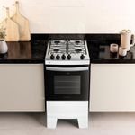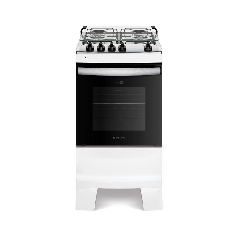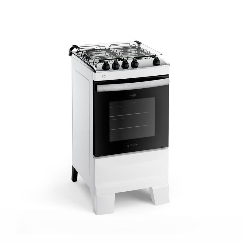 Fogão 4 Bocas Branco Com Mesa Inox Atlas Agile Up BivoltO Fogão Atlas Agile Up 4 Bocas Branco com Mesa Inox combina elegância e desempenho. Mesa de inox, puxador em alumínio escovado, pés estáveis, visor amplo do forno e grades duplas de aço resistente conferem atributos essenciais ao produto. Queimadores forjados asseguram distribuição de calor uniforme. Possui 2 prateleiras deslizantes para ajuste fácil dos alimentos. 4 queimadores (2 semirrápidos e 2 rápidos) e forno com 50 litros de capacidade. Confira mais características:Voltagem: BivoltPadrão de Tomada: 10ACor: BrancoLinha: Agile UpQuantidade de Bocas: 4 bocasTipo de Acendimento: AutomáticoGarantia: 12 MesesAcabamento da Mesa: InoxInstalação: Fogão de PisoDimensões do Produto (largura x altura x profundidade): 49,16 x 93,32 x 57,96 cmDimensões Internas do Forno (largura x altura x profundidade): 37 x 30 x 45 cmComprimento do Cabo de Energia: 96 cmFuncionamento: GásCapacidade do Forno: 50 LitrosAcabamento do Forno: Limpa FácilLuz no Forno: Sim (lâmpada 220v acompanha o produto)Vidro do Forno: Vidro DuploTampa: SimTrempes: Dupla de aço esmaltadoGrades do Forno: 2 Grades deslizantesBotões Removíveis: SimFabricação: NacionalPotência dos Queimadores: 2Q Semirrápido de 1,67kW e 2Q Rápido de 2,0kWSistema Corta/Bloqueia Gás: SimEficiência Energética: AEAN: 7897180510107- A conversão de gás é , se solicitada em até 90 dias após o recebimento do produto;- Não realizamos serviço de instação. Consulte nosso SAC para indicações de assistências técnicas credenciadas na sua região;- Não vendemos para CNPJ nesse canal, por favor finalize sua compra com um CPF.Voltagem: Bivolt | Padrão de Tomada: 10A | Cor: Branco | Quantidade de Queimadores: 4 | Acendimento: Automático | Acabamento da Mesa: Inox | Tipo de Montagem: De piso | Largura: 49,16 cm | Altura: 93,32 cm | Profundidade: 57,96 cm | Dimensões Internas do Forno: 37 x 30 x 45 cm (largura x altura x profundidade) | Cabo de Energia: 96 cm | Funcionamento: Gás | Capacidade do Forno: 50 litros | Acabamento do forno: Limpa Fácil | Luz no Forno: Sim (Lâmpada 220v acompanha o produto) | Vidro do Forno: Vidro Duplo | Tampa: Sim | Trempes: Dupla de aço esmaltado | Grades do forno: 2 grades deslizantes | Botões Removíveis: Sim | Potência dos queimadores: 2Q Semirrápido de 1,67kW e 2Q Rápido de 2,0kW | Sistema corta/bloqueia gás: Sim | Eficiência Energética: A