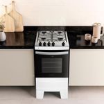A mesa de inox e o **puxador em alumínio escovado**, dão um toque de elegância à sua cozinha. Os **pés altos e robustos** proporcionam estabilidade e segurança durante o uso e facilitam a limpeza. E o **visor amplo do forno** oferece uma visão clara dos seus pratos em preparo.As grades **duplas de aço** são um destaque no Agile Up Inox, combinando estilo e resistência. Além de proporcionarem um visual único, essas grades foram projetadas para suportar panelas de diferentes tamanhos, garantindo estabilidade.Para maior praticidade, o fogão de inox possui **2 prateleiras deslizantes**, permitindo que você ajuste facilmente a posição dos alimentos dentro do forno.Com a **lâmpada do forno**, você poderá visualizar seus pratos com clareza e verificar seu cozimento sem precisar abrir a porta do forno, economizando energia e mantendo a temperatura interna estável.Ficha Técnica:Voltagem: BivoltPadrão de Tomada: 10ACor: BrancoLinha: Agile UpQuantidade de Bocas: 4 bocasTipo de Acendimento: AutomáticoGarantia: 12 MesesAcabamento da Mesa: InoxInstalação: Fogão de PisoDimensões do Produto (largura x altura x profundidade): 49,16 x 93,32 x 57,96 cmDimensões Internas do Forno (largura x altura x profundidade): 37 x 30 x 45 cmComprimento do Cabo de Energia: 96 cmFuncionamento: GásCapacidade do Forno: 50 LitrosAcabamento do Forno: Limpa FácilLuz no Forno: Sim (lâmpada 220v acompanha o produto)Vidro do Forno: Vidro DuploTampa: SimTrempes: Dupla de aço esmaltadoGrades do Forno: 2 Grades deslizantesBotões Removíveis: SimFabricação: NacionalPotência dos Queimadores: 2Q Semirrápido de 1,67kW e 2Q Rápido de 2,0kWSistema Corta/Bloqueia Gás: SimEficiência Energética: AEAN: 7897180510107DÚVIDAS FREQUENTESEste Fogão de embutir é para uso com Botijão de Gás?R: Este modelo sai de fábrica para funcionar com gás de botijão, o GLP.É possível realizar a conversão de botijão para Gás Natural (GN)/gás de rua?R: Sim, todos os nossos fogões podem ser convertidos para trabalhar com gás natural, o GN, ou gás de rua. A conversão é gratuita e deve ser solicitada após a entrega do fogão. O prazo após solicitação é de 48h para agendamento da conversão. Lembrando que você tem 90 dias para solicitar a conversão após a chegada do produto.Qual é o lado da mangueira do fogão?R: A saída é do lado esquerdo olhando o fogão de frente. Caso você queira colocar para o outro lado, deverá acoplar uma mangueira metálica e utilizar na transversal para evitar corrosão.