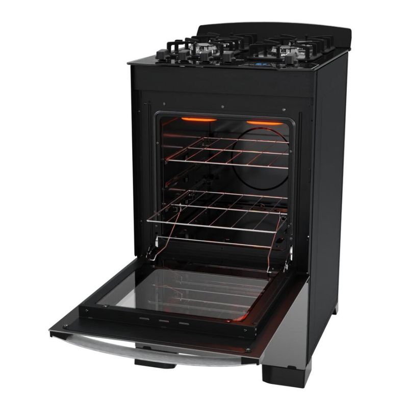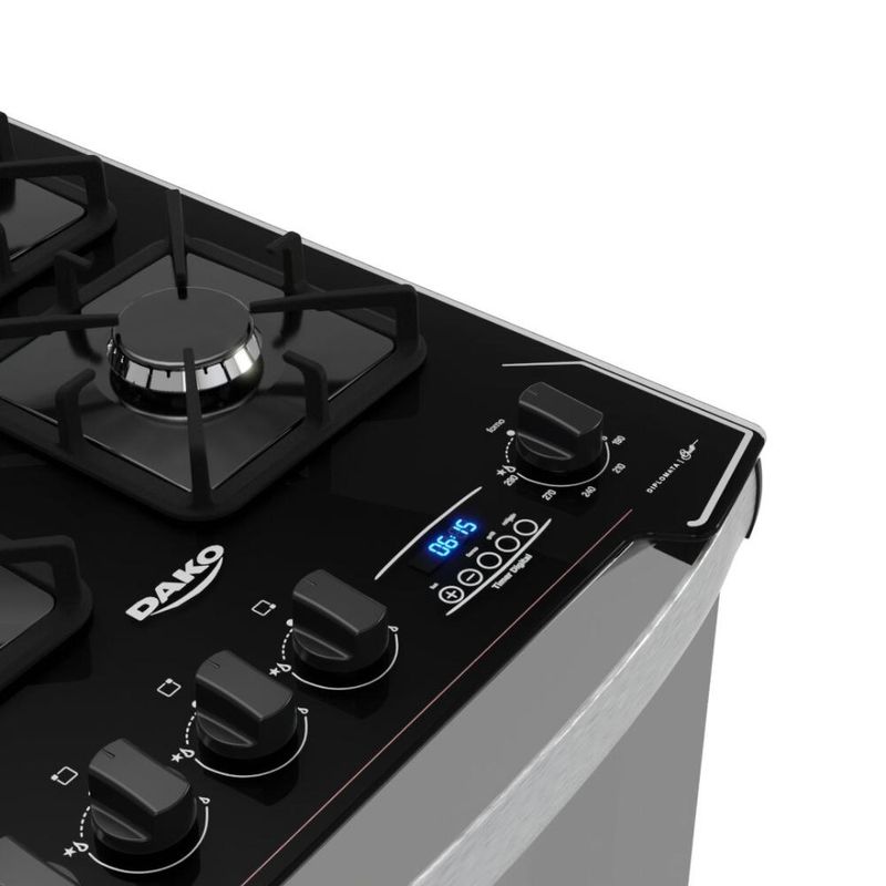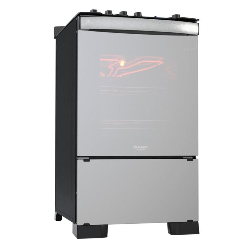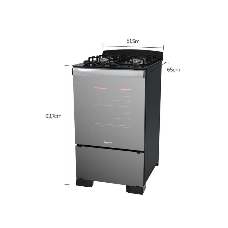 Além do desing sofisticado com frente total em vidro espelhado, o novo fogão Dako Diplomata Grill conta com uma série de diferenciais: timer digital, grill e dourador elétrico, exclusiva testeira anti-residuos em vidro temperado removível, mesa de vidro temperado com recorte frontal, grades de ferro fundido quadradas com 8 pontos de apoio, puxador de alumínio escovado, pés robustos e semi-embutidos e botões ergonômicos.A versão 4 bocas conta com 3 queimadores semirrápidos de 1,7kW e 1 queimador rápido de 3,0kW.O forno possui excelente capacidade de 60 litros, acabamento limpa fácil, iluminação interna (lâmpada acompanha o produto), 1 grade autodeslizante e 1 deslizante e porta com vidro duplo - que preserva o calor.Ficha Técnica:Marca: DakoVoltagem: BivoltPadrão de Tomada: 10ACor: PretoLinha: DiplomataQuantidade de Bocas: 4 BocasTipo de Acendimento: AutomáticoGarantia: 1 anoAcabamento da Mesa: Vidro TemperadoFuncionamento: GásInstalação: Fogão de PisoTrempes: Individuais em Ferro Fundido Quadradas 8 pontos de apoioGrades do Forno: 1 Grade Autodeslizante e 1 DeslizanteTimer Digital: SimBotões Removíveis: SimFabricação: NacionalSistema Corta Gás: SimAcabamento Forno: Limpa FácilCapacidade do Forno: 60LLuz no Forno: Sim (lâmpada acompanha o produto)Vidro no Forno: Vidro DuploLargura: 51,5cmAltura: 93,7cmProfundidade: 65Potência dos Queimadores: 3Q Semirrápidos de 1,7kW e 1Q Rápido de 3,0kWGrill: SimDÚVIDAS FREQUENTESEste Fogão é para uso com Botijão de Gás?R: Este modelo sai de fábrica para funcionar com gás de botijão, o GLP.É possível realizar a conversão de botijão para Gás Natural (GN)/gás de rua?R: Sim, todos os nossos fogões podem ser convertidos para trabalhar com gás natural, o GN, ou gás de rua. A conversão é gratuita e deve ser solicitada após a entrega do fogão. O prazo após solicitação é de 48h para agendamento da conversão. Lembrando que você tem 90 dias para solicitar a conversão após a chegada do produto.Qual é o lado da mangueira do fogão?R: A saída é do lado esquerdo olhando o fogão de frente. Caso você queira colocar para o outro lado, deverá acoplar uma mangueira metálica e utilizar na transversal para evitar corrosão.