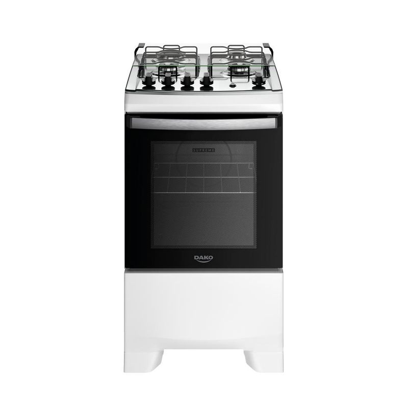 Comprar um fogão Dako é investir no que há de mais moderno e eficiente, com um preço que vai te surpreender!Os tempos mudaram e o Supreme Inox também. Ele continua compacto por fora e gigante por dentro. Afinal, até os sucessos merecem ser reinventados.Tenha mais agilidade no preparo das refeições com a praticidade que você merece. Moderno, seguro e eficiente, o fogão Dako Supreme Inox é ideal para todos os estilos de cozinha. A versão de 4 bocas conta com queimadores potentes, garantindo um preparo rápido, enquanto as grades duplas de aço oferecem firmeza e estabilidade para suas panelas.O puxador em alumínio escovado, além de ergonômico, dá um toque de sofisticação no design. A prateleira deslizante torna ainda mais fácil colocar e retirar suas receitas com total praticidade. O visor amplo do forno permite acompanhar o preparo sem precisar abrir a porta, e o acabamento Limpa Fácil deixa a limpeza ainda mais rápida e descomplicada.Ter um Fogão Dako Supreme é transformar a cozinha no coração da sua casa. É sentir o prazer de preparar refeições deliciosas com a confiança de estar utilizando um fogão que alia qualidade e inovação. Poucas coisas funcionam tão bem quanto um Fogão Dako Supreme Inox.Você vai perceber: Na hora de comprar, a Dako surpreende!Ficha Técnica: Voltagem: BivoltPadrão de Tomada: 10ACor: BrancoLinha: Supreme InoxQuantidade de Bocas: 4 bocasTipo de Acendimento: AutomáticoGarantia: 12 MesesAcabamento da Mesa: Mesa InoxInstalação: Fogão de PisoTurbo Convecção: NãoDimensões do Produto (largura x altura x profundidade): 52,8 x 96,0 x 64,2 cmComprimento do Cabo de Energia: 96 cmFuncionamento: GásCapacidade do Forno: 60 LitrosGrades do Forno: 1 Grade DeslizanteAcabamento do Forno: Esmalte Limpa FácilLuz no Forno: Sim (lâmpada de 220v acompanha o produto)Vidro do Forno: Vidro Duplo TemperadoTampa: SimTrempes: Duplas de Aço Timer Digital: NãoBotões Removíveis: SimFabricação: NacionalPotência dos Queimadores: 1Q Família de 2,0kW, 1Q Mega Chama de 2,5kW e 2Q Semi-Rápido de 1,7kW.Potência do Forno: 2,0kWSistema Corta/Bloqueia Gás: SimEficiência Energética: AEAN: 7897180599300SKU: 300001809Conversão de Gás: Gratuita, se solicitada em até 90 dias após o recebimento do produtoServiço de Instalação: Não realizamos. Consulte nosso SAC para indicações de assistência técnica credenciada na sua região**NÃO VENDEMOS PARA CNPJ NESTE CANAL. SOMENTE CPF.
