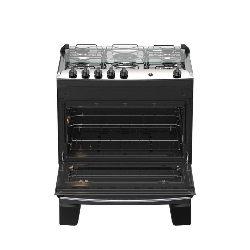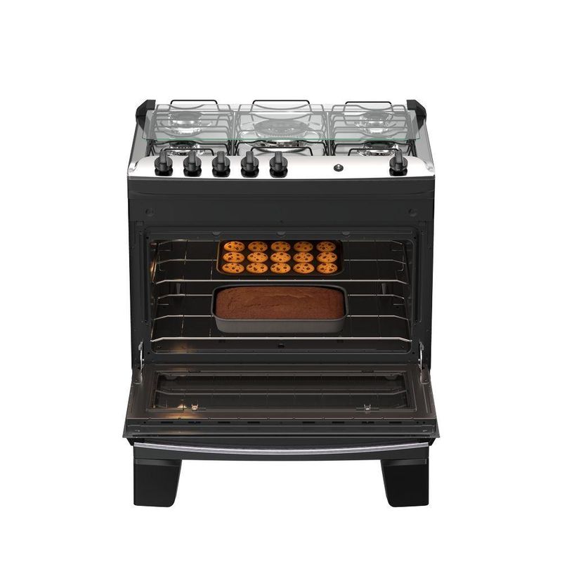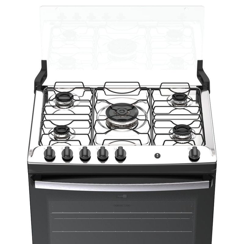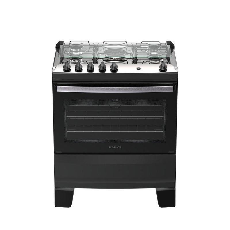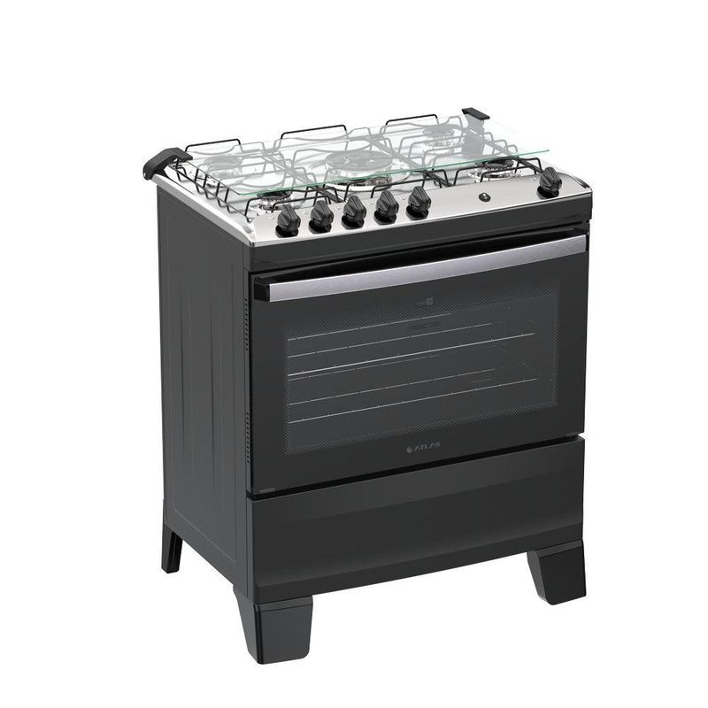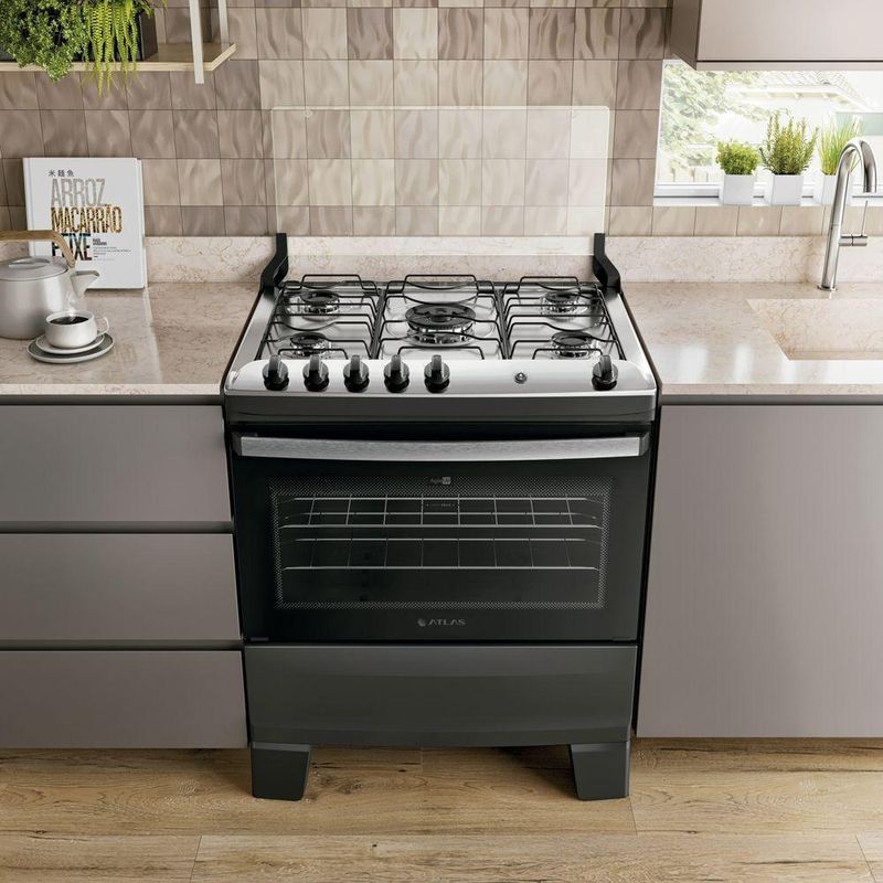 Fogão 5 Bocas Atlas Agile Up Automático Mesa Inox Preto Bivolt No dia a dia corrido, faz diferença contar com um fogão moderno e resistente, que acompanha seu ritmo e transforma o visual da cozinha. O Agile Up se destaca por isso.O fogão Agile Up une robustez e design, com acabamento refinado, linhas harmônicas e puxador em alumínio escovado, oferecendo elegância e firmeza no uso diário ? o equilíbrio entre funcionalidade e estética.Com duas prateleiras deslizantes, visor amplo e luz interna, você pode assar pratos ao mesmo tempo, com praticidade e com mais controle, sem precisar abrir o forno.E para quem cozinha todos os dias, durabilidade não é detalhe: é necessidade. Os queimadores reforçados do Agile Up são mais duráveis e ágeis no preparo. A base com pés altos encara sua rotina sem quebrar.O Agile Up Inox é assim: feito para durar, com estilo e performance.CaracterísticasMais moderno e resistente:Detalhes harmônicas, acabamento refinado e presença marcante.Duas prateleiras deslizantes:Puxou, deslizou, sua receita vem com segurança até você.Puxador em alumínio escovado:Um toque de estilo e firmeza que você sente nas mãos.Vidro interno do forno removível:Fácil de tirar, ideal para manter o forno limpo sem esforço.Queimadores maiores e reforçados:Durável no uso, ágil no preparo.Visor do forno amplo e luz interna:Mais controle da sua receita, sem ter que abrir o forno.Pés altos que já vêm montados:Firmes no uso e práticos na faxina.Tampa de vidro:Sua parede protegida de respingos e sujeiras.Botões removíveis:Tirou, limpou sem esforço.Forno Limpa Fácil:Praticidade que ajuda em uma limpeza mais completa.Características TécnicasMarca: AtlasModelo: Agile UpTipo: De PisoCor do Produto: PretoAlimentação: GásTensão: BivoltTipo de Mesa: InoxTrempe: Dupla de ArameAcendimento: AutomáticoTampa Mesa/ Testeiro: Tampa de VidroBotões removível: SimQuantidade de Queimadores: 4Tripla/Dupla chama: NãoPotência: 10,64 KWCapacidade do Forno: 82LPotência Forno: 1,78KWAcabamento Interno do Forno: Esmalte Limpa FácilPrateleiras: 2 DeslizantesLuz no Forno: SimLâmpada: 220VVidro porta do forno: Vidro duplo temperadoPuxador: Alumínio EscovadoVisor porta do forno: TotalVálvula de segurança do forno: SimDimensões e Peso Aproximados do Produto:Altura: 93,4 cmLargura: 76,1 cmProfundidade: 57,6 cmPeso do produto: 26,35 KgGarantia do Produto:1 ano (3 meses de garantia legal e 9 meses para defeitos de fabricação).Importante:Imprescindível à conferência no ato da entrega. Em caso de anormalidade, recuse o recebimento. Todas as informações divulgadas são de responsabilidade do fabricante, podendo sofrer alterações sem nenhum aviso prévio.Imagens meramente ilustrativas.Fogão 5 bocas Atlas Agile Up Automático Mesa Inox Preto