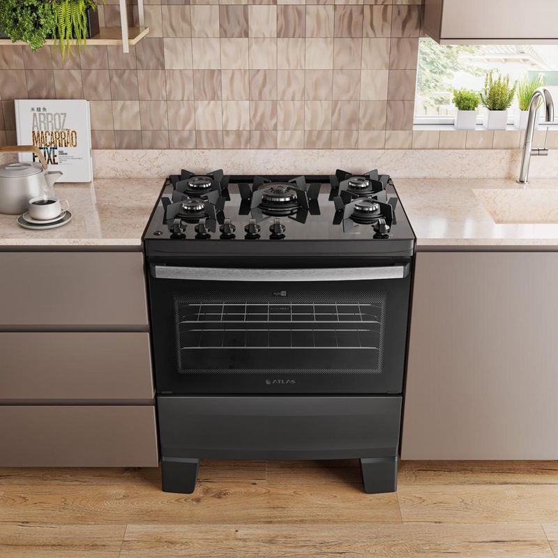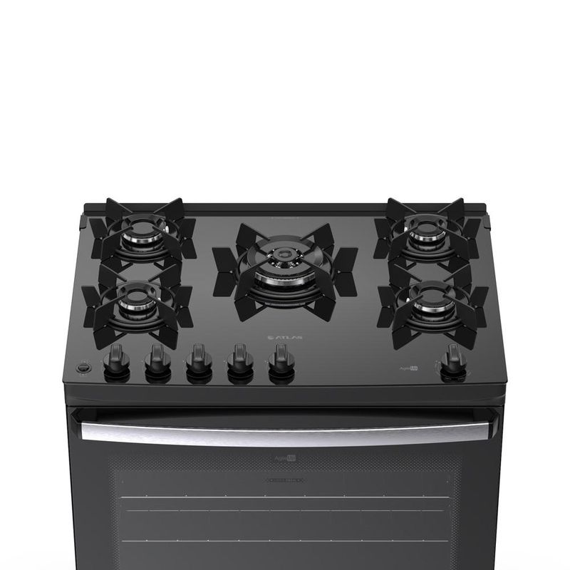 Já pensou em elevar o padrão da sua cozinha, unindo estética, modernidade, resistência? O Fogão Agile Up Glass foi feito para quem busca mais do que o básico: um fogão impactante, durável e moderno, que combina design marcante, funcionalidade e eficiência para acompanhar o ritmo da sua casa com estilo. E o melhor de tudo, está disponível em branco, preto e na nova cor titanium. Com design elegante e contemporâneo, o Agile Up Glass traz linhas harmônicas e acabamento refinado que valorizam o ambiente. O puxador em alumínio escovado adiciona firmeza e sofisticação, os queimadores maiores e reforçados trazem durabilidade, enquanto o queimador Tripla Chama garante agilidade no preparo das receitas. As duas prateleiras do forno, sendo uma auto deslizante e outra deslizante, trazem praticidade e segurança: é só abrir a porta e a receita vem até você, sem esforço. Além disso, o visor amplo e a luz interna permitem que você acompanhe o cozimento sem precisar abrir a porta. O Agile Up Glass é o destaque que a sua cozinha esperava: um novo design que valoriza o ambiente, aliado à tradição e excelência da Atlas, referência em qualidade e confiança nas cozinhas brasileiras. Atributos e benefícios: Mais moderno e resistente - Detalhes harmônicos, acabamento refinado e presença marcante.Tripla Chama - Receitas prontas muito mais rápidas e menos tempo perdido.Duas prateleiras, sendo uma autodeslizante - Puxou, deslizou, sua receita vem com segurança até você.Puxador em alumínio escovado - Um toque de estilo e firmeza que você sente nas mãos.Vidro interno do forno removível - Fácil de tirar, ideal para manter o forno limpo sem esforço.Queimadores maiores e reforçados - Durável no uso, ágil no preparo.Visor do forno amplo e luz interna - Mais controle da sua receita, sem ter que abrir o forno.Pés altos que já vêm montados - Firmes no uso e práticos na faxina.Acendimento prático: girou, clicou e acendeu - Sem precisar de fósforo ou isqueiro. Rápido e fácil de usar.Botões removíveis - Tirou, limpou sem esforço.Forno Limpa Fácil - Acabamento interior que facilita a limpeza da gordura. Ficha Técnica: Marca: AtlasModelo: Agile UP.Voltagem: BivoltCores: Preto, Branco e TitaniumAcabamento da Mesa: Vidro TemperadoAcabamento do Forno: Limpa FácilBotões Removíveis: SimCapacidade do Forno: 82 LitrosConversão de Gás: Gratuita se solicitada em até 90 dias após o recebimentoDimensões (L × A × P): 75 × 92,3 × 56,3 cmFabricação: NacionalFuncionamento: GásGarantia: 12 MesesGrades do Forno: 1 Grade Autodeslizante e 1 DeslizanteInstalação: Fogão de PisoLinha: Agile Up GlassLuz no Forno: SimPotência dos Queimadores: 2Q Semi-Rápido (1,67 kW), 2Q Rápido (2,0 kW), 1Q Tripla Chama (3,3 kW)Quantidade de Bocas: 5 BocasSistema Corta/Bloqueia Gás: SimTimer: Não PossuiTrempes: Individuais de Aço FoscoVidro do Forno: Vidro Duplo