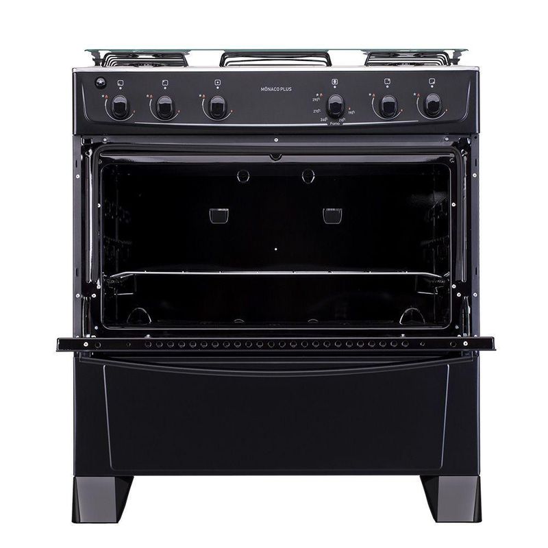 Fogão 5 Bocas Atlas Mônaco Plus Com Mesa Inox E Acendimento Automático Preto BivoltFogão 5 Bocas com Mesa Inox Atlas Mônaco Plus: prático e essencial!Possui mesa em inox, tampa de vidro na mesa, grades duplas de aço esmaltado, acendimento automático e botões removíveis, que facilita na hora da limpeza.2 queimadores de 1,7kW, 2 queimadores Família de 2,0kW e 1 queimador Chama de 3,0kW.O forno possui visor amplo na porta, que permite enxergar tudo o que está dentro, capacidade de 86,5 litros, acabamento limpa fácil, 1 grade deslizante e porta com vidro duplo, que preserva o calor.Especificações Técnicas:Marca: AtlasLinha: Mônaco PlusRef.: 300000717Cor: PretoVoltagem: BivoltQuantidade de Bocas: 5 bocasTipo de Acendimento: AutomáticoAcabamento da Mesa: InoxInstalação: Fogão de PisoTurbo Convecção: NãoGrill: NãoFuncionamento: GásComprimento do Cabo de Energia: 96 cmCapacidade do Forno: 86,5 LitrosAcabamento do Forno: Limpa FácilLuz no Forno: NãoVidro do Forno: Vidro DuploTampa: SimTrempes: Dupla de aço esmaltadoGrades do Forno: 1 Grade deslizanteTimer Digital: NãoBotões Removíveis: NãoFabricação: NacionalPotência dos Queimadores: 2Q Ramal de 1,7kW, 2Q Família de 2,0kW e 1Q Chama de 3,0kWSistema Corta/Bloqueia Gás: NãoEficiência Energética: ADimensões Aproximadas Internas do Forno (LxAxP): 64 cm x 30 cm x 45 cmDimensões Aproximadas do Produto (LxAxP): 75 cm x 88,6 cm x 58,5 cmPeso Aproximado: 24,5 kgEAN: 7897180505356: 12 meses contra defeitos de fabricação, de acordo com as normas do fabricante.