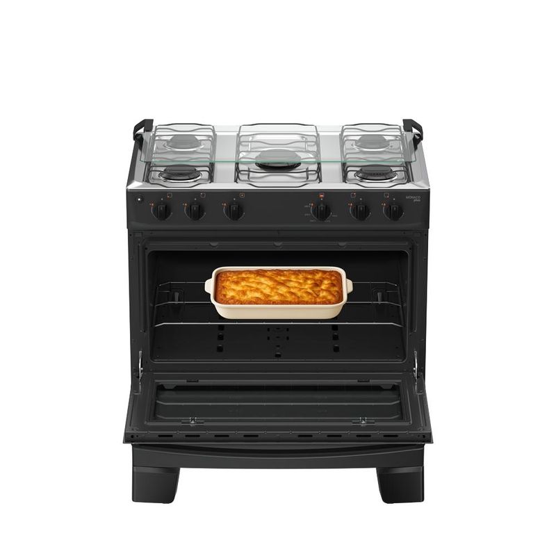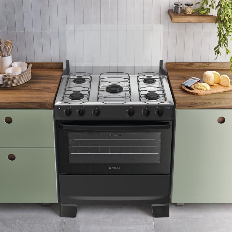 O Fogao 5 Bocas Atlas Monaco Plus Mesa de Inox e a escolha ideal para quem busca beleza, potencia e praticidade no dia a dia. Seu design moderno com mesa em inox deixa a cozinha mais elegante, enquanto os queimadores potentes, incluindo a Mega Chama, garantem preparo rapido e eficiente das suas receitas. A limpeza tambem fica muito mais facil com botoes removiveis, vidro interno removivel, queimadores Limpa Facil e pes altos que facilitam o acesso ao chao. O forno espacoso, com visor amplo, permite acompanhar os pratos sem perder calor, entregando resultados perfeitos sempre. Se voce quer um fogao completo, bonito, resistente e feito para agilizar sua rotina, o Atlas Monaco Plus e a escolha certa.Praticidade, desempenho e estilo, tudo em um so produto. Atributos e Beneficios: Estetica e design renovados : Visual mais moderno, com linhas harmonicas e estilo que valoriza a cozinhaQueimador Limpa Facil : Queimador mais robusto e facil de limparAcendimento automatico : Girou, clicou, acendeuVidro interno do forno removivel : Mais praticidade na hora da limpezaMega Chama : Mais velocidade no preparo das receitasVisor mais amplo : Permite visualizar o alimento sem precisar abrir a porta do forno, preservando o calorPuxador de aco : Puxador mais longo e ergonomico, com acabamento que valoriza o produtoPes altos e robustos : Altos e resistentes, ja montados de fabrica. Mais seguranca, praticidade e facil limpeza do chaoTampa de vidro : Evite respingos nas paredes com um produto que vem completoBotoes removiveis : Botoes removiveis que facilitam a limpeza do dia a diaForno Limpa Facil : Acabamento interior que facilita a limpeza da gorduraForno espacoso : Ideal para preparar desde receitas simples ate pratos maiores Ficha Tecnica: Tipo : de PisoCor do Produto: Preto, Branco, TitaniumAlimentacao: GasTimer: NãoTipo: InoxTrempe: Duplo de ApoioAcendimento: ManualTampa Mesa: Tampa de VidroPosicao manipuladores: Front ControlTipo manipuladores: PretoManipulador removivel: SimQuantidade: 5Tipo: AbertoMega Chama: 1 de 3,0 kWRapido: 2 de 2,0 kWSemi‑Rapido: 2 de 1,67 kWPotencia Total (kW): 10,34Capacidade (L): 82Alimentacao: GasGrill: NaoResistencia Superior: NaoResistencia Inferior: NaoPotencia forno (W): 1,78 kWAcabamento interno: Esmalte Limpa FacilLuz no forno: NaoAbertura porta do forno: DeslizanteMaterial porta: Vidro duplo temperadoPuxador: Aço PintadoTampa do puxador: PretoVisor porta: SimValvula de seguranca do forno: SimLargura (cm): 76,2Altura (cm): 88,8Profundidade (cm): 55,2Peso (kg): 23,6Largura (cm): 76,2Altura (cm): 89,7Profundidade (cm): 56,9Peso (kg): 26,4