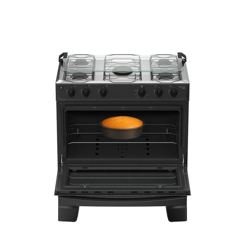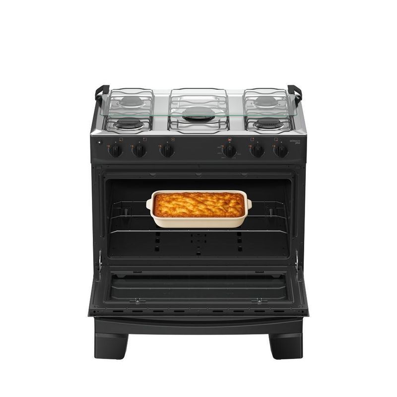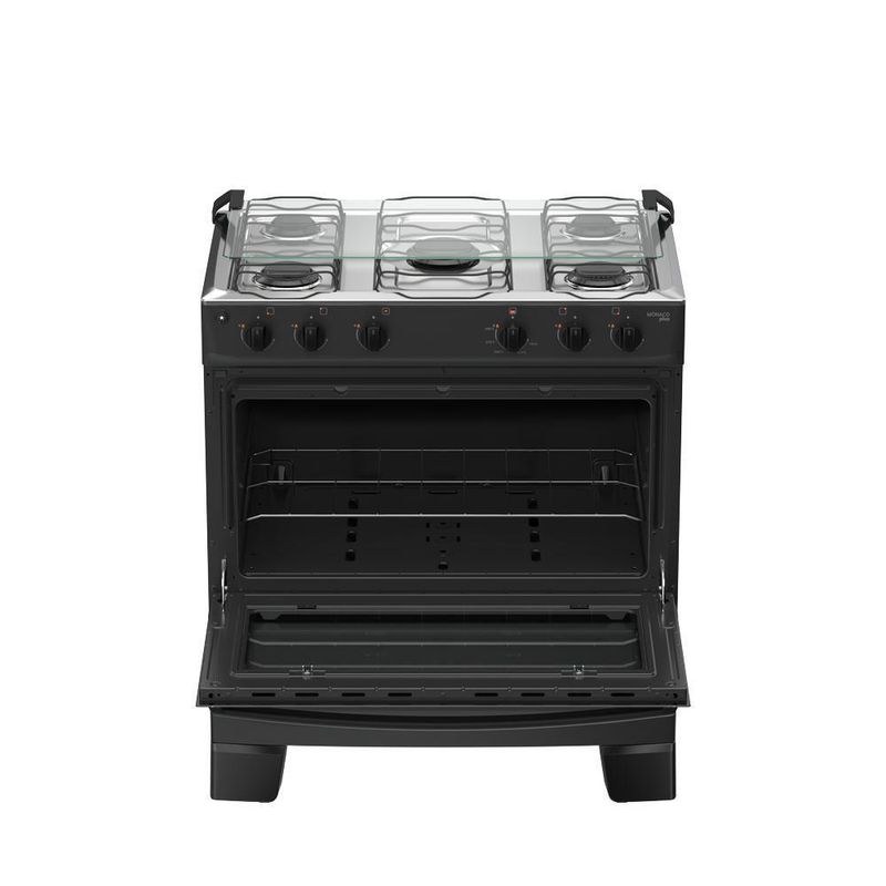 Fogão 5 Bocas Atlas Mônaco Plus Mesa De Inox Bivolt PretoO Fogão 5 Bocas Atlas Mônaco Plus Mesa de Inox é a escolha ideal para quem busca beleza, potência e praticidade no dia a dia. Seu design moderno com mesa em inox deixa a cozinha mais elegante, enquanto os queimadores potentes — incluindo a Chama — garantem preparo rápido e eficiente das suas receitas.A limpeza também fica muito mais fácil com botões removíveis, vidro interno removível, queimadores Limpa Fácil e pés altos que facilitam o acesso ao chão. O forno espaçoso, com visor amplo, permite acompanhar os pratos sem perder calor, entregando resultados perfeitos sempre.Se você quer um fogão completo, bonito, resistente e feito para agilizar sua rotina, o Atlas Mônaco Plus é a escolha certa.Praticidade, desempenho e estilo — tudo em um só produto.Atributos e Benefícios:Estética e design renovados : Visual mais moderno, com linhas harmônicas e estilo que valoriza a cozinhaQueimador Limpa Fácil : Queimador mais robusto e fácil de limparAcendimento automático : Girou, clicou, acendeuVidro interno do forno removível : Mais praticidade na hora da limpezaMega Chama : Mais velocidade no preparo das receitasVisor mais amplo : Permite visualizar o alimento sem precisar abrir a porta do forno, preservando o calorPuxador de aço : Puxador mais longo e ergonômico, com acabamento que valoriza o produtoPés altos e robustos : Altos e resistentes, já montados de . Mais , praticidade e fácil limpeza do chãoTampa de vidro : Evite respingos nas paredes com um produto que vem completoBotões removíveis : Botões removíveis que facilitam a limpeza do dia a diaForno Limpa Fácil : Acabamento interior que facilita a limpeza da gorduraForno espaçoso : Ideal para preparar desde receitas simples até pratos maioresFicha Técnica:Marca: AtlasModelo:Mônaco PlusVoltagem: BivoltCor: PretoTipo : de PisoCor do Produto : Preto / Branco / TitaniumAlimentação : GásTimer : N/ATipo : InoxTrempe : Duplo de ApoioAcendimento : ManualTampa Mesa / Tampo : Tampa de VidroPosição manipuladores : Front ControlTipo manipuladores : PretoManípulador removível : SimQuantidade Bocas: 5Tipo : AbertoTipo / Dupla Chama : Esmaltado / Esmaltado e Foljado Chama : 1 de 3,0 kWRápido : 2 de 2,0 kWSemi?Rápido : 2 de 1,67 kWPotência Total (kW) : 10,3Capacidade (L) : 82Alimentação : GásGrill : NãoResistência Superior : NãoResistência Inferior : NãoPotência forno (W) : 1,78 kWAcabamento interno : Esmalte Limpa FácilLuz no forno : NãoAbertura porta do forno : DeslizanteMaterial porta : Vidro duplo temperadoPuxador : Aço PintadoTampa do puxador : PretoVisor porta : SimVálvula de do forno : SimLargura (cm) : 76,2Altura (cm) : 88,8Profundidade (cm) : 55,2Peso (kg) : 23,6
