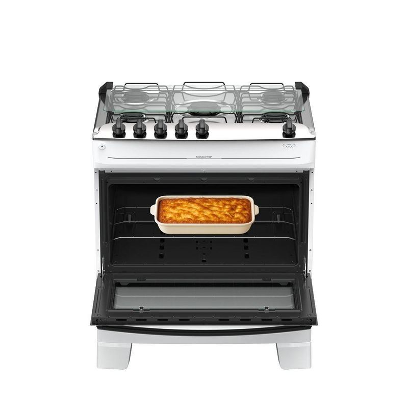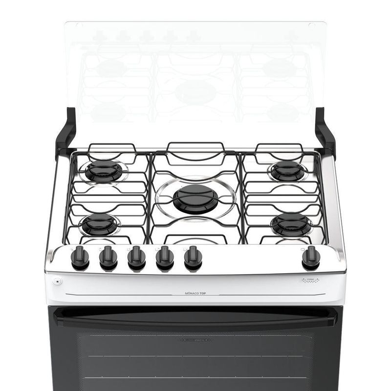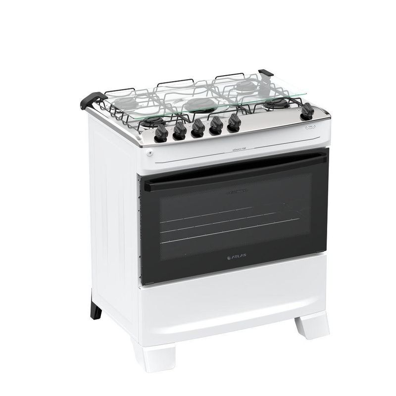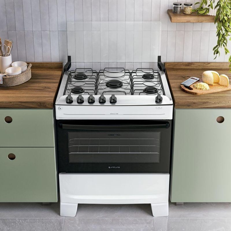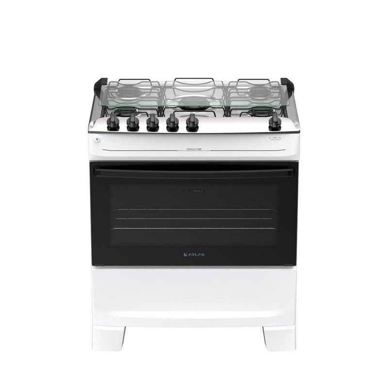 Fogão 5 Bocas Atlas Mônaco Top Automático Mesa Inox Branco BivoltO Mônaco Top une praticidade e durabilidade para o dia a dia da sua cozinha. Fácil de usar e com detalhes que realmente fazem a diferença na rotina, ele foi feito para durar, trazendo a facilidade que a sua vida precisa.Para ter mais praticidade no dia a dia, a Atlas pensou em cada detalhe: forno e queimadores Limpa Fácil, que simplificam a faxina e ajudam você a ganhar tempo. Além disso, os pés altos já vêm montados e o acendimento automático facilita ainda mais — é só girar, clicar e pronto, chama acesa em segundos.Mais do que um fogão, o Mônaco Top carrega a confiança de quem entende a cozinha do brasileiro há décadas. Uma tradição que se renova a cada produto, sempre pensando em facilitar a sua vida.O Mônaco Top é bonito, resistente e prático, do jeito que a sua cozinha merece.Atributos e BenefíciosMais bonito, resistente e versátil – Design que combina com todas as cozinhasBotões no topo da mesa – Visual moderno e controle práticoForno e queimadores Limpa Fácil – Mais praticidade na limpezaAcendimento automático – Girou, clicou e acendeu, sem fósforo ou isqueiroVidro interno do forno removível – Facilita a limpeza completaVisor do forno grande – Acompanhe receitas sem abrir o fornoPuxador de aço – Seguro, resistente e firme ao toquePés altos já montados – Mais praticidade e facilidade na faxinaTampa de vidro – Protege a parede contra respingosBotões removíveis – Limpeza rápida e sem esforçoCaracterísticas TécnicasMarca: AtlasModelo: Mônaco TopTipo: De PisoCor: BrancoTensão: BivoltTipo de Mesa: InoxTrempe: Dupla de ArameAcendimento: AutomáticoTampa: VidroBotões removíveis: SimQuantidade de queimadores: 5Tripla/Dupla chama: NãoPotência total: 10,34 kWAlimentação: GásFornoCapacidade: 82 litrosPotência: 1,78 kWAcabamento interno: Esmalte Limpa FácilPrateleiras: 1 deslizanteLuz interna: NãoLâmpada: NãoVidro da porta: Vidro duplo temperadoPuxador: Aço pintadoVisor: PequenoVálvula de segurança: SimDimensões e PesoAltura: 90 cmLargura: 76,1 cmProfundidade: 57,8 cmPeso: 24 kgGarantia12 meses (3 meses de garantia legal + 9 meses para defeitos de fabricação)Informações ImportantesConferir o produto no ato da entregaEm caso de avaria, recusar o recebimentoInformações sujeitas a alterações pelo fabricanteImagens meramente ilustrativas