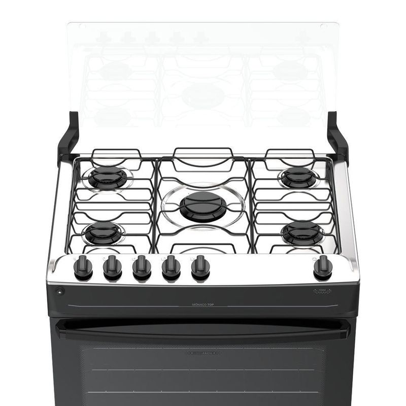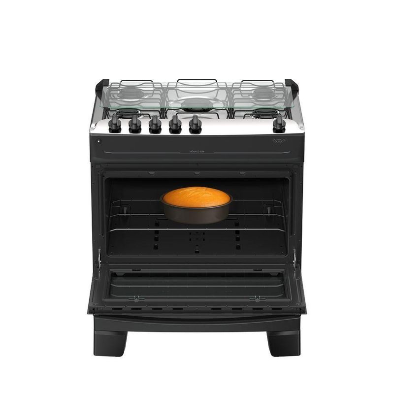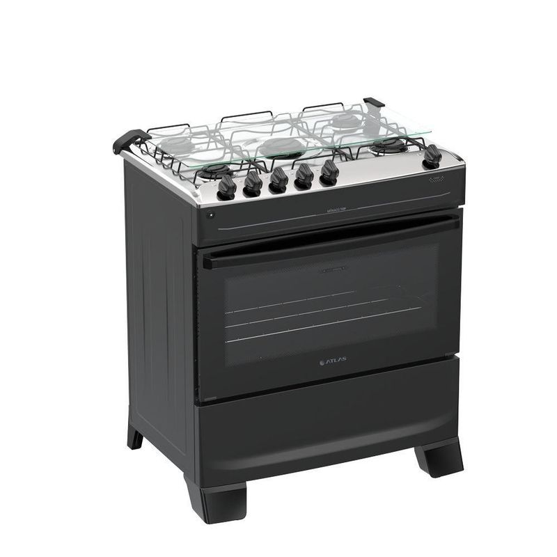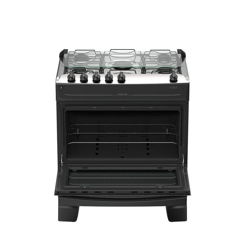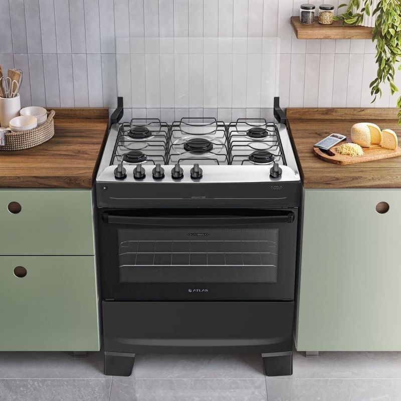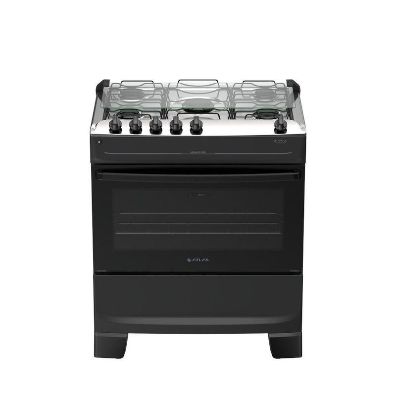 Fogão 5 Bocas Atlas Mônaco Top Automático Mesa Inox Preto BivoltFogão 5 bocas Atlas Mônaco Top Automático Mesa Inox PretoO Mônaco Top une praticidade e durabilidade para o dia a dia da sua cozinha. Fácil de usar e com detalhes que realmente fazem a diferença na rotina, ele foi feito para durar, trazendo a facilidade que a sua vida precisa.Para ter mais praticidade no dia a dia, a Atlas pensou e fez: forno e queimadores Limpa Fácil, que simplificam a faxina e ajudam você a ganhar tempo no dia a dia. Além disso, os pés altos já vêm montado e conta com o acendimento automático na hora de acender: é só girar, clicar e pronto, chama acesa em segundos.Mais do que um fogão, o Mônaco Top carrega a confiança de quem entende a cozinha do brasileiro há décadas. Uma tradição que se renova a cada produto, sempre pensando em facilitar a sua vida.O Mônaco Top é bonito, resistente e prático, do jeito que a sua cozinha merece.CaracteristicasMais bonito, resistente e versátil:Novos detalhes que combinam com todas as cozinhas.Botões no topo da mesa:Visual moderno e controle prático.Forno e queimadores limpa fácil:Praticidade que ajuda em uma limpeza mais completa.Acendimento prático: girou, clicou e acendeu:Sem precisar de fósforo ou isqueiro. Rápido e fácil de usar.Vidro interno do forno removível:Fácil de tirar, ideal para manter o forno limpo sem esforço.Visor do forno grande:Veja a sua receita sem precisar abrir o forno.Puxador de aço:Forte, seguro e não escorrega na mão.Pés altos que já vêm montados:Firmes no uso e práticos na faxina.Tampa de vidro:Sua parede protegida de respingos e sujeiras.Botões removíveis:Tirou, limpou sem esforço.Características TécnicasMarca: AtlasModelo: Mônaco TopTipo: De PisoCor do Produto: PretoTensão: BivoltTipo de Mesa: InoxTrempe: Dupla de ArameAcendimento: AutomáticoTampa Mesa: Tampa de VidroBotões removível: SimQuantidade de Queimadores: 5Tripla/Dupla chama: NãoPotência: 10,34 KWCapacidade do Forno: 82LAlimentação: GásPotência Forno: 1,78KWAcabamento Interno do Forno: Esmalte Limpa Fácil1 Prateleiras: 1 DeslizanteLuz no Forno: NãoLâmpada: NãoVidro porta do forno: Vidro duplo temperadoPuxador: Aço PintadoVisor porta do forno: PequenoVálvula de segurança do forno: SimDimensões e Peso Aproximados do Produto:Altura: 90Largura: 76,1 cmProfundidade: 57,8 cmPeso do produto: 24 KgGarantia do Produto:1 ano (3 meses de garantia legal e 9 meses para defeitos de fabricação).Importante:Imprescindível à conferência no ato da entrega. Em caso de anormalidade, recuse o recebimento. Todas as informações divulgadas são de responsabilidade do fabricante, podendo sofrer alterações sem nenhum aviso prévio.Imagens meramente ilustrativas.Fogão 5 bocas Atlas Mônaco Top Automático Mesa Inox Preto