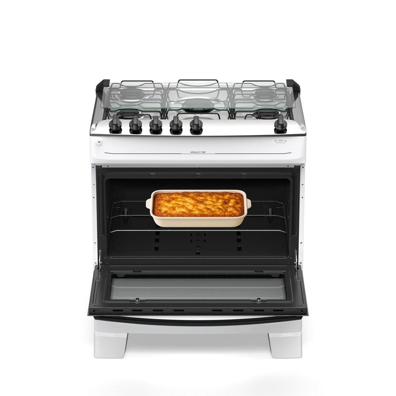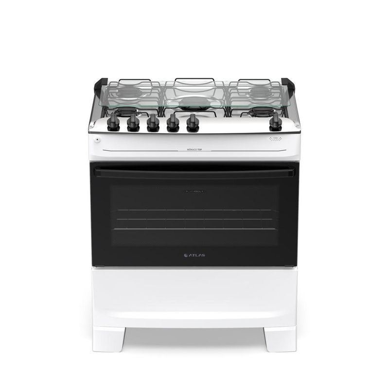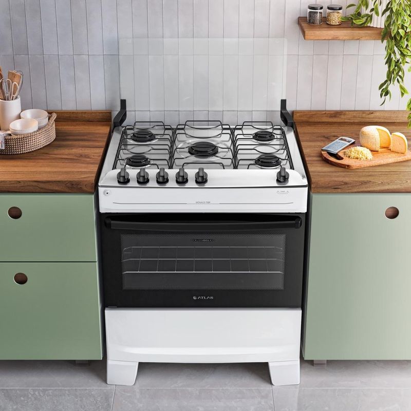 O Mônaco Top une praticidade e durabilidade para o dia a dia da sua cozinha. Fácil de usar e com detalhes que realmente fazem a diferença na rotina, ele foi feito para durar, trazendo a facilidade que a sua vida precisa.Os botões no topo da mesa garantem um visual moderno e controle prático.E para combinar com a sua casa, ele está disponível nas versões preto, branco e na nova cor titanium, que se destaca pelo visual diferenciado.Para ter mais praticidade no dia a dia, a Atlas pensou e fez: forno e queimadores Limpa Fácil, que simplificam a faxina e ajudam você a ganhar tempo no dia a dia. Além disso, os pés altos já vêm montado e conta com o acendimento automático na hora de acender: é só girar, clicar e pronto, chama acesa em segundos.Chega de complicações na cozinha, agora até as receitas mais demoradas ficam prontas mais rápido com a potência da mega chama, disponível na versão 5 bocas.Mais do que um fogão, o Mônaco Top carrega a confiança de quem entende a cozinha do brasileiro há décadas. Uma tradição que se renova a cada produto, sempre pensando em facilitar a sua vida.O Mônaco Top é bonito, resistente e prático, do jeito que a sua cozinha merece. Atributos e Benefícios:Mais bonito, resistente e versátil - Novos detalhes que combinam com todas as cozinhas.Botões no topo da mesa - Visual moderno e controle prático.Forno e queimadores limpa fácil - Praticidade que ajuda em uma limpeza mais completa.Acendimento prático: girou, clicou e acendeu - Sem precisar de fósforo ou isqueiro. Rápido e fácil de usar.Vidro interno do forno removível - Fácil de tirar, ideal para manter o forno limpo sem esforço.Mega Chama - Receitas prontas muito mais rápidas e menos tempo perdido.Visor do forno grande - Veja a sua receita sem precisar abrir o forno.Puxador de aço - Forte, seguro e não escorrega na mão.Pés altos que já vêm montados - Firmes no uso e práticos na faxina.Tampa de vidro - Sua parede protegida de respingos e sujeiras.Botões removíveis - Tirou, limpou sem esforço.