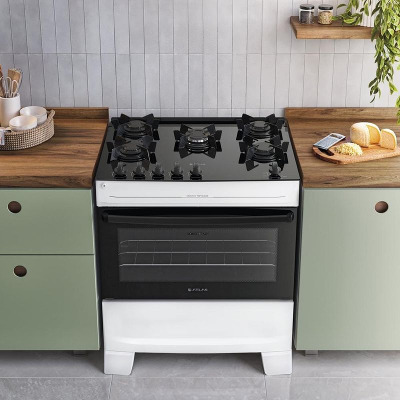 Já imaginou um fogão com mesa de vidro, mas que fosse prático no dia a dia? A Atlas pensou nisso e criou o Mônaco Top Glass, um fogão que combina beleza, segurança e simplicidade em um só produto.Os pés já vêm montados, pronto para usar. Com mesa de vidro temperado e botões na mesa, ele é fácil de usar e ainda traz aquele toque moderno que transforma qualquer cozinha. Está disponível nas versões preto, branco e a nova cor titanium.As grades de aço com 6 apoios mantêm as panelas firmes, garantindo segurança na hora de cozinhar. E quando a rotina pede agilidade, a versão 5 bocas com mega chama entra em cena para preparar suas receitas mais rápido, sem perder o sabor de um almoço feito em casa.O forno e queimadores Limpa Fácil, simplificam a faxina e ajudam você a ganhar tempo no dia a dia.Feito por quem entende do assunto, o Mônaco Top Glass carrega a confiança de quem há anos faz parte das histórias de tantas famílias brasileiras. Porque quando o fogão é Atlas, você sabe que foi feito para facilitar sua vida, todo dia.Mônaco Top Glass: Bonito e feito para durar. Atributos e Benefícios:Mais bonito, resistente e versátil - Novos detalhes que combinam com todas as cozinhas.Botões no topo da mesa - Visual moderno e controle prático.Suas panelas ainda mais firmes - Grades de aço com 6 apoios que evitam que elas balancem.Mega Chama - Receitas prontas muito mais rápidas e menos tempo perdido.Forno e queimadores limpa fácil - Praticidade que ajuda em uma limpeza mais completa.Acendimento prático: girou, clicou e acendeu - Sem precisar de fósforo ou isqueiro. Rápido e fácil de usar.Vidro interno do forno removível - Fácil de tirar, ideal para manter o forno limpo sem esforço.Visor do forno grande - Veja a sua receita sem precisar abrir o forno.Puxador de aço - Forte, seguro e não escorrega na mão.Pés altos que já vêm montados - Firmes no uso e práticos na faxina.Botões removíveis - Tirou, limpou sem esforço.