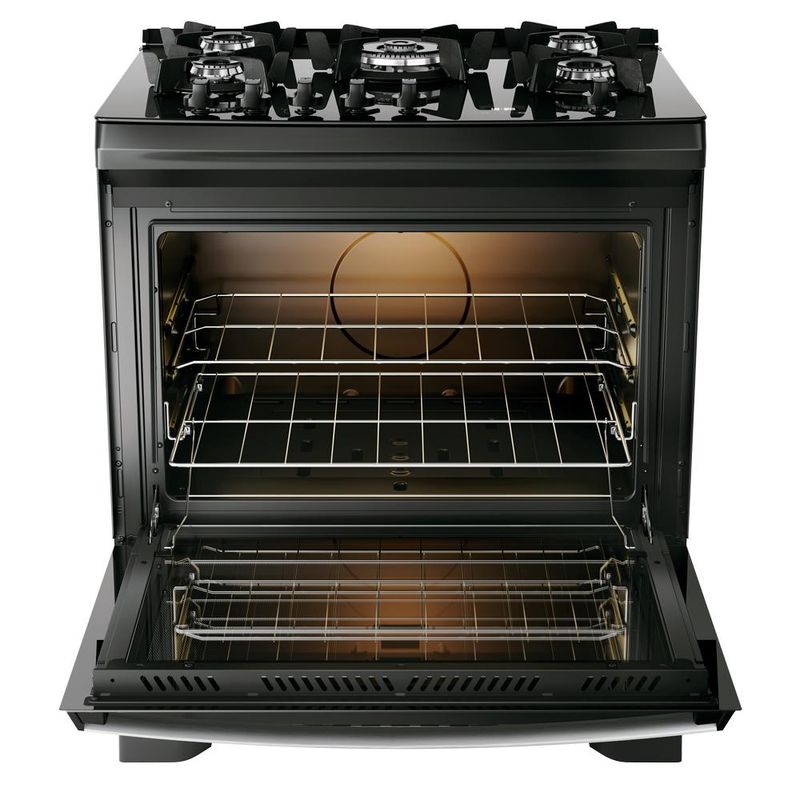 Os tempos mudaram e o Supreme Black Glass também. Ele continua compacto por fora e gigante por dentro. Afinal, até os sucessos merecem ser reinventados.Tenha mais agilidade no preparo das refeições com a praticidade que você merece. Moderno, seguro e eficiente, o fogão Dako Supreme Black Glass é perfeito para todos os estilos de cozinha. A versão de 5 bocas contém queimadores potentes, enquanto as classes individuais de ferro fundido com 6 pontos de apoio garantem aderência e estabilidade para as panelas. Programe o tempo de cozimento, acenda a luz do forno e acione o acendimento utilizando o painel touch. O puxador em alumínio escovado, além de ergonômico, traz sofisticação ao design do fogão. Com duas prateleiras deslizantes: a inferior facilita a retirada dos alimentos, enquanto a superior, com altura ajustável, se adapta às necessidades de cada preparação. A viseira ampla do forno permite acompanhar o preparo sem precisar abrir a porta e o acabamento Limpa Fácil deixa a limpeza ainda mais rápida e descomplicada.Ter um Fogão Dako Supreme Black Glass é transformar a cozinha no coração da sua casa. É sentir o prazer de preparar refeições deliciosas com a confiança de estar utilizando um fogão que alia qualidade e inovação. Poucas coisas funcionam tão bem quanto um Fogão Dako Supreme Black Glass. Você vai perceber na hora de comprar, a Dako surpreende! Ficha Técnica: Voltagem: Bivolt Padrão de Tomada: 10A Cor: Preto Linha: Supreme Black Quantidade de Bocas: 5 bocas Tipo de Acendimento: Automático Garantia: 12 Meses Acabamento da Mesa: Mesa de Vidro Instalação: Fogão de Piso Turbo Convecção: Não Dimensões do Produto (largura x altura x profundidade): 76,6 x 95,0 x 65,2 cm Comprimento do Cabo de Energia: 96 cm Funcionamento: Gás Capacidade do Forno: 100 Litros Acabamento do Forno: Limpa Fácil Luz no Forno: Sim (lâmpada de 220v acompanha o produto) Vidro do Forno: Vidro Duplo Tampa: Não Trempes: Ferro Fundido Grades do Forno: 2 Grade deslizantes Timer Digital: Sim Botões Removíveis: Sim Fabricação: Nacional SKU: 300002088 EAN: 7897180512835