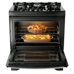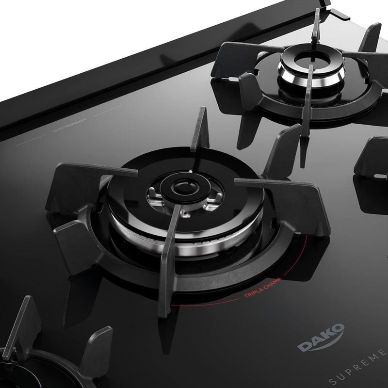 Potência e agilidade no preparoO Fogão 5 Bocas Dako Supreme Glass é a escolha ideal para quem busca eficiência e rapidez na cozinha. Com a tecnologia Tripla Chama, suas receitas ganham velocidade e intensidade no preparo, permitindo que você cozinhe diversos pratos ao mesmo tempo com resultados perfeitos. As 5 bocas proporcionam mais flexibilidade e espaço para panelas de diferentes tamanhos, ideal para quem tem uma rotina movimentada ou adora preparar receitas mais elaboradas. A mesa de vidro preta não só agrega um design moderno, mas também é de fácil manutenção, trazendo praticidade para o seu dia a dia.Design sofisticado e funcionalCom um design elegante e inovador, o Fogão Dako Supreme Glass é mais do que um simples eletrodoméstico, é um elemento decorativo para sua cozinha. O puxador em alumínio escovado proporciona um toque de sofisticação e é perfeitamente ergonômico, garantindo que sua utilização seja confortável e sem esforço. As grades individuais de ferro fundido, com 6 pontos de apoio, são resistentes e garantem uma excelente estabilidade para suas panelas, oferecendo maior segurança durante o preparo das refeições. Já o visor amplo do forno permite que você acompanhe o preparo sem precisar abrir a porta, mantendo a temperatura interna constante.Tecnologia e facilidade de usoAlém de ser moderno e eficiente, o Fogão Dako Supreme Glass é também extremamente prático. O acendimento automático elimina a necessidade de fósforos ou acendedores, proporcionando mais segurança ao acender o fogão. A prateleira deslizante torna o manuseio das panelas muito mais fácil, enquanto o acabamento Limpa Fácil facilita a limpeza após o uso, poupando seu tempo. Com o sistema bivolt, você pode usar o fogão em diferentes ambientes com total versatilidade.