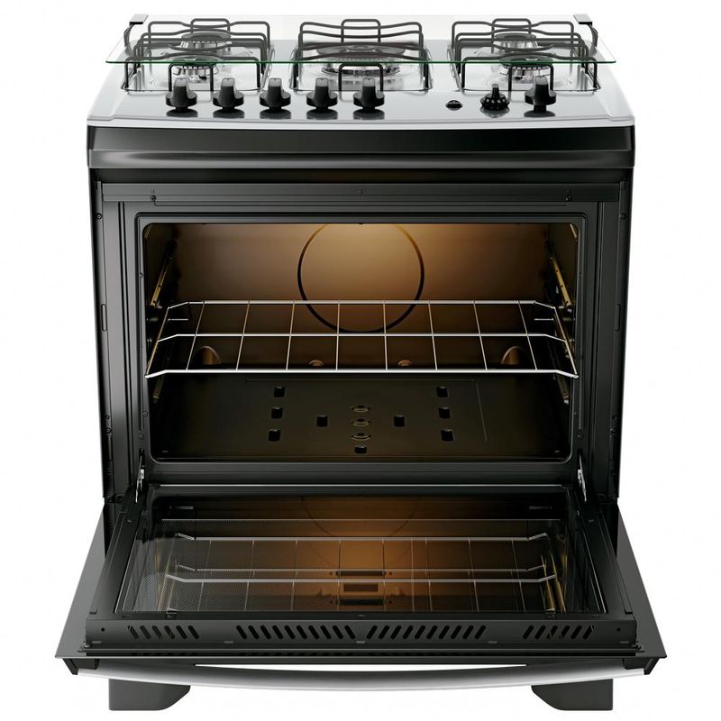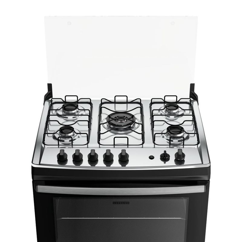 O Fogão Supreme Inox 5Q Timer - Preto transforma sua cozinha com tecnologia, praticidade e design que fazem a diferença. Com 5 bocas incluindo a potente Tripla Chama, você ganha velocidade e precisão no preparo, enquanto as grades duplas de aço dão maior estabilidade para panelas de todos os tamanhos. Com tamanho ideal para qualquer cozinha e interior espaçoso, o forno conta com luz interna e prateleira deslizante ajustável, que permitem acompanhar o cozimento de perto e facilitam na hora de colocar e retirar os alimentos com total praticidade. O visor amplo exibe cada detalhe dos seus preparos sem a necessidade de abrir a porta, ajudando a manter a temperatura ideal. O acabamento Limpa Fácil elimina a preocupação com a limpeza pós-preparo, enquanto o isolamento térmico de qualidade retém o calor de forma eficiente, garantindo economia de gás e resultados consistentes em todas as suas receitas. Com acendimento automático, você ganha mais segurança e facilidade em cada uso. Atributos e Benefícios: - Design moderno e funcional: acabamento em inox e detalhes em preto que combinam durabilidade, resistência e um visual que valoriza a cozinha.- Controle do tempo: timer analógico com aviso sonoro para você nunca mais perder o ponto das suas receitas.- Potência ideal para sua rotina: tripla chama para acelerar o cozimento e otimizar seu tempo.- Estabilidade para suas panelas: grades duplas de aço que garantem firmeza e segurança durante o preparo dos alimentos.- Praticidade no forno: prateleira deslizante e ajustável, visor amplo e luz interna para um controle total dos seus assados.- Eficiência do início ao fim: forno de 100L com acabamento limpa fácil e isolamento térmico em lã de basalto para assados uniformes e economia de gás.- Se quiser que eu transforme em um único parágrafo, resumo ou outro formato, posso fazer também! Ficha Técnica: Marca: DakoCor: PretoTimer Analógico: SimTipo de Montagem: De PisoTensão: BivoltTipo de Mesa: Mesa de InoxTrempe: Arame Tipo de Acendimento: AutomáticoDimensões do Produto: 77,3 x 96 x 64,7 cm (Largurax Altura x Profundidade)Botões Removíveis: SimTipo de Queimador: 1Q Tripla Chama de 3,3 kW, 2Q Família de 2,0 kW e 2 Q Semi-Rápido de 1,7 kWCapacidade do Forno: 100 LTipo de Alimentação: GásGrill: Não Acabamento Interno do Forno : Esmalte Limpa FácilGrades no Forno: 1 DeslizanteLuz no Forno: Sim