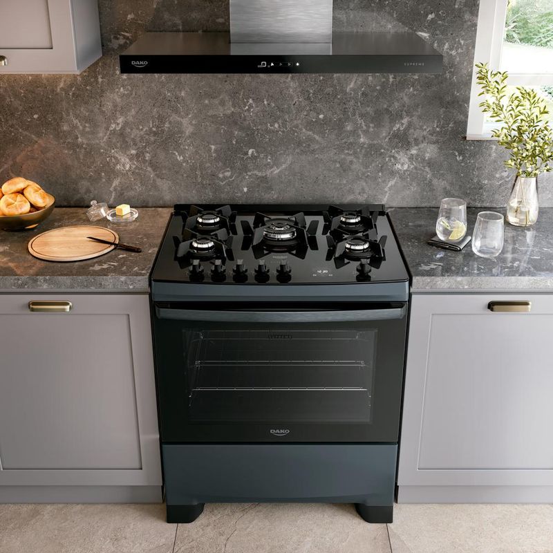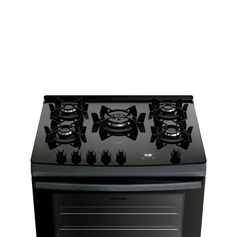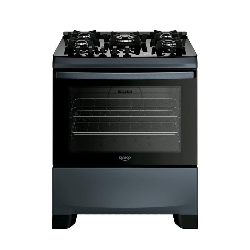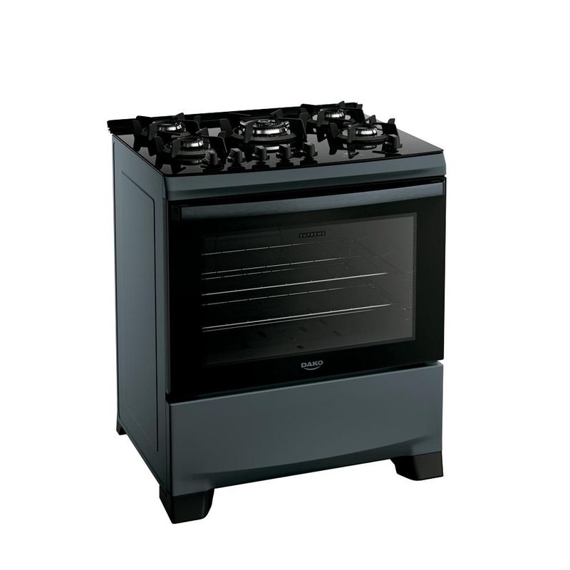 Os tempos mudaram e o Supreme Timer Glass também. Ele continua compacto por fora e gigante por dentro. Afinal, até os sucessos merecem ser reinventados.Tenha mais agilidade no preparo das refeições com a praticidade que você merece. Moderno, seguro e eficiente, o fogão Dako Supreme Timer Glass é perfeito para todos os estilos de cozinha. A versão de 5 bocas conta com **Tripla Chama** para um preparo rápido, enquanto as grades individuais de ferro fundido com 6 pontos de apoio, garantem aderência e estabilidade para suas panelas. Programe o tempo de cozimento, acenda a luz do forno e acione o acendimento utilizando o **painel touch**.O **puxador em alumínio escovado**, além de ergonômico, traz sofisticação ao design do fogão. Com **duas prateleiras deslizantes:** a inferior facilita a retirada dos alimentos, enquanto a superior, com altura ajustável, se adapta às necessidades de cada preparo. O **visor amplo** do forno permite acompanhar o preparo sem precisar abrir a porta e o acabamento **Limpa Fácil** deixa a limpeza ainda mais rápida e descomplicada.Ter um Fogão Dako Supreme Timer Glass é transformar a cozinha no coração da sua casa. É sentir o prazer de preparar refeições deliciosas com a confiança de estar utilizando um fogão que alia qualidade e inovação.Poucas coisas funcionam tão bem quanto um Fogão Dako Supreme Timer Glass. Você vai perceber: na hora de comprar, a Dako surpreende!Há 90 anos, é mais que bom. É Dako!Ficha TécnicaVoltagem: BivoltPadrão de Tomada: 10ACor: Titanium Linha: Supreme Timer GlassQuantidade de Bocas: 5 bocasTipo de Acendimento: AutomáticoGarantia: 12 MesesAcabamento da Mesa: Vidro TemperadoInstalação: Fogão de PisoTurbo Convecção: NãoDimensões do Produto (largura x altura x profundidade): 52,2 x 94,1 x 64,9 cmComprimento do Cabo de Energia: 96 cmFuncionamento: GásCapacidade do Forno: 60 LitrosAcabamento do Forno: Limpa FácilLuz no Forno: Sim (lâmpada de 220v acompanha o produto)Vidro do Forno: Vidro DuploTampa: NãoTrempes: Ferro fundidoGrades do Forno: 2 Grades deslizantesTimer Touch: SimBotões Removíveis: SimFabricação: NacionalPotência dos Queimadores: 1Q Familia 2 kW, 2Q Mega chama de 2,0kW e 2Q semi-rapido de 1,7kW Sistema Corta/Bloqueia Gás: SimEficiência Energética: AEAN: 7897180599393