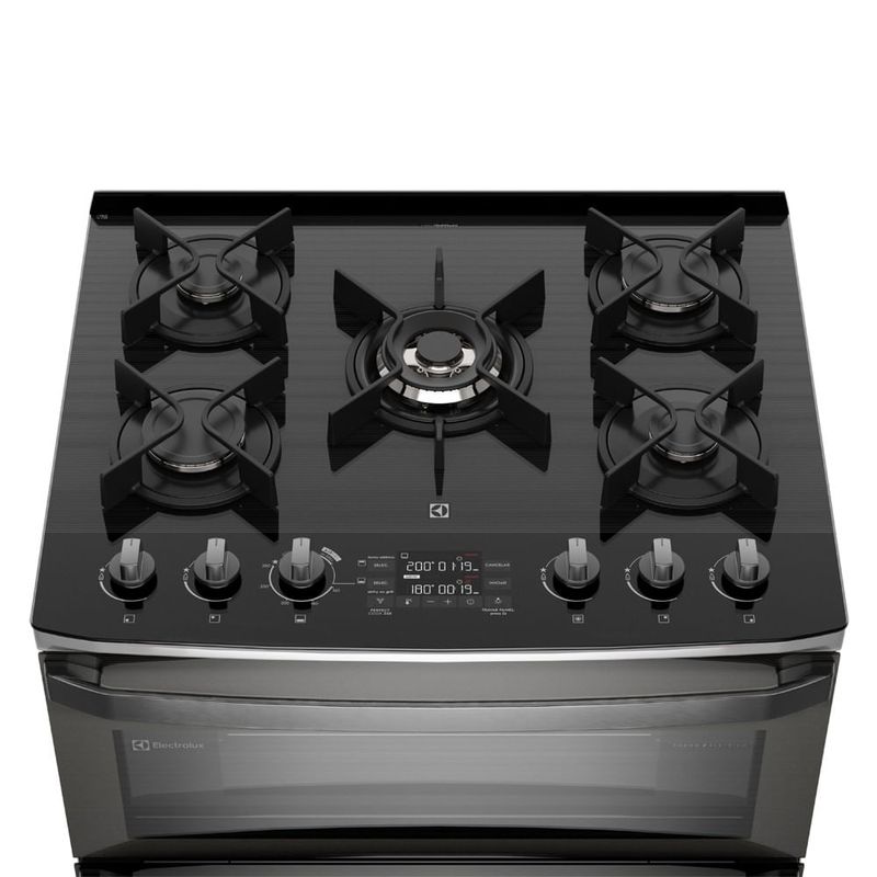 Conheça o Fogão Electrolux Expert FE5AD. O primeiro fogão com Airfry do Brasil¹. É fogão, é forno elétrico, é Airfryer. Conheça! Revolucione sua cozinha com o Fogão 5 bocas Electrolux Cinza Expert Função Air Fryer, 2 Fornos, Grill e Timer (FE5AD) a combinação perfeita para uma alimentação saudável em grandes porções. A Electrolux inovou e trouxe a função Air fryer no forno a gás do fogão para você fazer de uma vez só até 4X mais porções dos alimentos de uma forma mais saudável, reduzindo até 34% das calorias e 70% das gorduras das refeições. Além de ser o primeiro fogão com Air fryer no Brasil¹, ele te ajuda a ter uma rotina mais sustentável por evitar o descarte de até 27L de óleo por ano na natureza². A Exclusiva Tecnologia PerfectCook360 assa os alimentos até 25%³ mais rápido e tudo por igual, porque combina a Cavidade Selada que oferece maior controle de temperatura e menos perda de calor. Já a Convecção, assa tudo por igual através de um ventilador interno que circula o ar quente de forma uniforme e garante uma temperatura homogênea em todos os cantos e alturas do forno. A função VaporBake® é perfeita para massas e pães. Através do cozimento a vapor, melhora em até 2 vezes4 a crocância deixando macio por dentro. O Regenerar a Vapor, reaquece e transforma os pratos e preserva o sabor e aroma dos alimentos sem ressecá-los. E você pode preparar dois pratos ao mesmo tempo com o Duplo Forno. Que permite, inclusive, o preparo do prato principal e da sobremesa simultaneamente, ganhando mais tempo no preparo de suas receitas sem misturar sabores. O design moderno da Mesa de vidro temperado, com superfície lisa e resistente, fica fácil limpar e tem 2 anos de garantia5. Para finalizar suas receitas utilize o Grill para gratinar e dourar a superfície dos alimentos, resultando em mais textura e sabor. Além disso, o Multi Chama do Fogão Electrolux Expert FE5AD distribui a chama de uma forma mais potente e é ideal para panelas maiores. Revolucione sua cozinha com o Fogão 5 bocas Electrolux Cinza Expert com Duplo Forno. Função Air fryer e Mesa de vidro (FE5AD) a combinação perfeita para uma alimentação saudável em grandes porções. A Electrolux inovou e trouxe a função Air fryer no forno a gás do fogão para você fazer de uma vez só até 4X mais proções dos alimentos de uma forma mais saudável. reduzindo até 34% das calorias e 70% das gorduras das refeições. Além de ser o primeiro fogão com Air fryer no Brasil¹. ele te ajuda a ter uma rotina mais sustentável por evitar o descarte de até 27L de óleo por ano na natureza². A Exclusiva Tecnologia PerfectCook360 assa os alimentos até 25%³ mais rápido e tudo por igual. porque combina a Cavidade Selada que oferece maior controle de temperatura e menos perda de calor. Já a Convecção. assa tudo por igual através de um ventilador interno que circula o ar quente de forma uniforme e garante uma temperatura homogênea em todos os cantos e alturas do forno. A função VaporBake® é perfeita para massas e pães. Através do cozimento a vapor. melhora em até 2 vezes4 a crocância deixando macio por dentro. O Regenerar a Vapor. reaquece e transforma os pratos e preserva o sabor e aroma dos alimentos sem ressecá-los. E você pode preparar dois pratos ao mesmo tempo com o Duplo Forno. Que permite. inclusive. o preparo do prato principal e da sobremesa simultaneamente. ganhando mais tempo no preparo de suas receitas sem misturar sabores. O design moderno da Mesa de vidro temperado. com superfície lisa e resistente. fica fácil limpar e tem 2 anos de garantia5. Para finalizar suas receitas utilize o Grill para gratinar e dourar a superfície dos alimentos. resultando em mais textura e sabor. Além disso. o Multi Chama do Fogão Electrolux Expert FE5AD distribui a chama de uma forma mais potente e é ideal para panelas maiores. ¹Modelos de fogões a gás com forno de cavidade selada e convecção ²Testes realizados por nutricionista com 800g de batata-frita congelada, comparando a fritura convencional (utilizando 1800ml de óleo de soja) e o preparo na função airfry do forno de embutir OE9XB (sem adição de óleo). O resultado demonstrou redução de 33,9% de calorias e 68,7% de gordura quando preparado na função airfry do modelo OE9XB.Testes ao comparar a capacidade de preparo de uma única vez de asinhas de frango na Airfryer Electrolux EAF20 (330g) e no forno de embutir Electrolux OE9XB (1100g), onde o resultado na função airfry do forno foi de 3,6 mais porções. Considerando o consumo de 15 pacotes de 800g de batata-frita congelado por ano. É necessário utilizar 1800ml de óleo para fritar um pacote de 800g de forma convencional, mas utilizando o forno de embutir OE9XB com a função airfry, não há necessidade de utilizar óleo. ³Resultados obtidos em testes internos, nos fogões com função PerfectCook360 em comparação com fogão Electrolux sem a mesma função. 4 Resultados obtidos em testes internos, no modelo FE5IB com função VaporBake em comparação com fogões/fornos Electrolux sem a mesma função. 5Apenas a Mesa de Vidro terá garantia de 2 anos contra manchas, lascas e fraturas, desde que feito o registro do produto pelo consumidor em até 3 meses após a emissão da nota fiscal, no portal da Electrolux. A garantia para o 1º ano não necessita registro. Saiba mais sobre como registrar seu produto no Manual do Produto. 6 Apenas a esmaltação FastClean terá garantia de 2 anos contra manchas, lascas e fraturas, desde que feito o registro do produto pelo consumidor em até 3 meses após a emissão da nota fiscal, no portal da Electrolux. A garantia para o 1º ano não necessita registro. Saiba mais sobre como registrar seu produto no Manual do Produto.