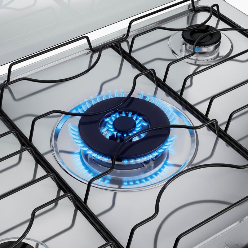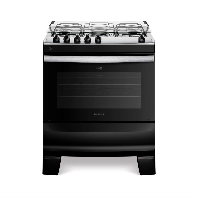 *Não vendemos para CNPJ neste canal de vendas. Compras realizadas com CNPJ serão automaticamente canceladas.A mesa de inox e o **puxador em alumínio escovado**, dão um toque de elegância à sua cozinha. Os **pés altos e robustos** proporcionam estabilidade e segurança durante o uso e facilitam a limpeza. E o **visor amplo do forno** oferece uma visão clara dos seus pratos em preparo.As grades **duplas de aço** são um destaque no Agile Up Inox, combinando estilo e resistência. Além de proporcionarem um visual único, essas grades foram projetadas para suportar panelas de diferentes tamanhos, garantindo estabilidade.Para maior praticidade, o fogão de inox possui **2 prateleiras deslizantes**, permitindo que você ajuste facilmente a posição dos alimentos dentro do forno.Com a **lâmpada do forno**, você poderá visualizar seus pratos com clareza e verificar seu cozimento sem precisar abrir a porta do forno, economizando energia e mantendo a temperatura interna estável.Ficha Técnica:Voltagem: BivoltPadrão de Tomada: 10ACor: PretoLinha: Agile UpQuantidade de Bocas: 5 bocasTipo de Acendimento: AutomáticoGarantia: 12 MesesAcabamento da Mesa: InoxInstalação: Fogão de PisoDimensões do Produto (largura x altura x profundidade): 76,16 x 93,32 x 57,96 cmComprimento do Cabo de Energia: 96 cmFuncionamento: GásCapacidade do Forno: 86,5 LitrosAcabamento do Forno: Limpa FácilLuz no Forno: Sim (lâmpada 220v acompanha o produto)Vidro do Forno: Vidro DuploTampa: SimTrempes: Dupla de aço esmaltadoGrades do Forno: 2 Grades deslizantesBotões Removíveis: SimFabricação: NacionalPotência dos Queimadores: 2Q Semirrápido de 1,67kW, 2Q Rápido de 2,0kW e 1Q Tripla Chama de 3,3kWSistema Corta/Bloqueia Gás: SimEficiência Energética: AEAN: 7897180510121DÚVIDAS FREQUENTESEste Fogão de embutir é para uso com Botijão de Gás?R: Este modelo sai de fábrica para funcionar com gás de botijão, o GLP.É possível realizar a conversão de botijão para Gás Natural (GN)/gás de rua?R: Sim, todos os nossos fogões podem ser convertidos para trabalhar com gás natural, o GN, ou gás de rua. A conversão é gratuita e deve ser solicitada após a entrega do fogão. O prazo após solicitação é de 48h para agendamento da conversão. Lembrando que você tem 90 dias para solicitar a conversão após a chegada do produto.Qual é o lado da mangueira do fogão?R: A saída é do lado esquerdo olhando o fogão de frente. Caso você queira colocar para o outro lado, deverá acoplar uma mangueira metálica e utilizar na transversal para evitar corrosão.INFORMAÇÕES ADICIONAIS- Todos os produtos são enviados via transportadoras parceiras.- Garantia: 12 meses contra defeito de fabricação.