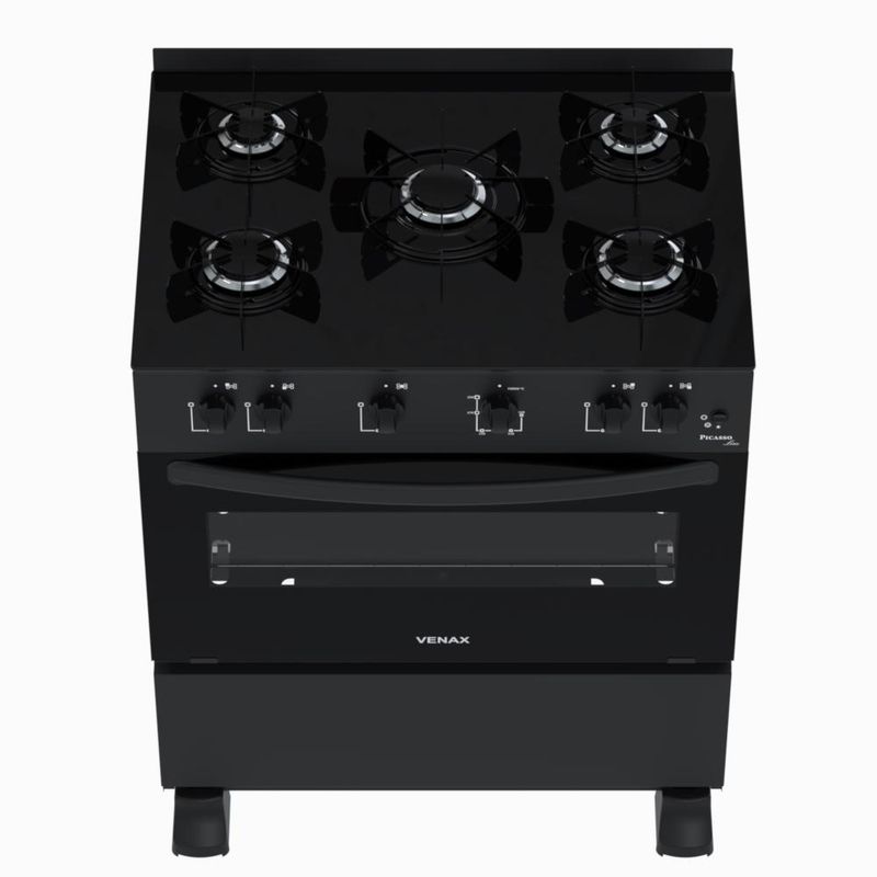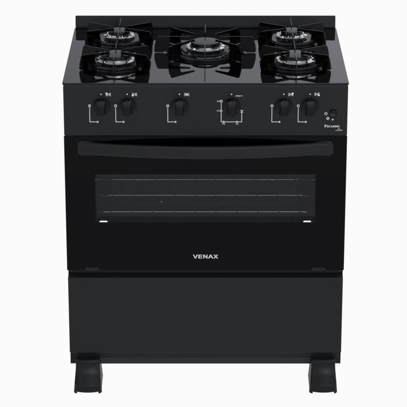 CaracterísticasTipo: Fogão de pisoMarca: VenaxAcendimento: AutomáticoQueimadores: 3 Grandes e 2 MédiosTrempe dos queimadores: Individual esmaltadaMesa dos queimadores: VidroTampa de vidro: NãoBotões: RemovíveisPrateleiras no forno: 1 RegulávelRevestimento forno: Esmalte limpa fácilTemperatura: 5 Posições de 180°C até 290°CVálvula de segurança no forno: SimLuz no forno: NãoFunção grill: NãoTimer grill: NãoTimer gás: NãoEspeto giratório: NãoBandeja coletora de resíduos: SimPorta removível: NãoPorta do forno: Vidro panorâmicoVidro duplo na porta: SimPuxador da porta: Aço pintadoEstufa: NãoCor das laterais: BrancoEntrada de gás: Uma entrada, lado esquerdo visto de frenteMedidas do produto: Altura 91cm - Largura 74,50cm - Profundidade 60cmEspecificações TécnicasAlimentação: Gás GLP (A conversão para Gás Natural não é coberta pela garantia)Tensão: BivoltFrequência: 50/60HzPotência queimadores da mesa: 1,80kW (queimador grande); 1,35kW (queimador médio)Dimensões internas do forno(LxPxA): 64,8x47x29 (cm)Volume do forno: 88,3LPotência queimador do forno: 3,30kWClassificação energética: "A"Etiquetas: ENCE e CONPETGarantia: 1 AnoL-largura / P-profundidade / A-altura