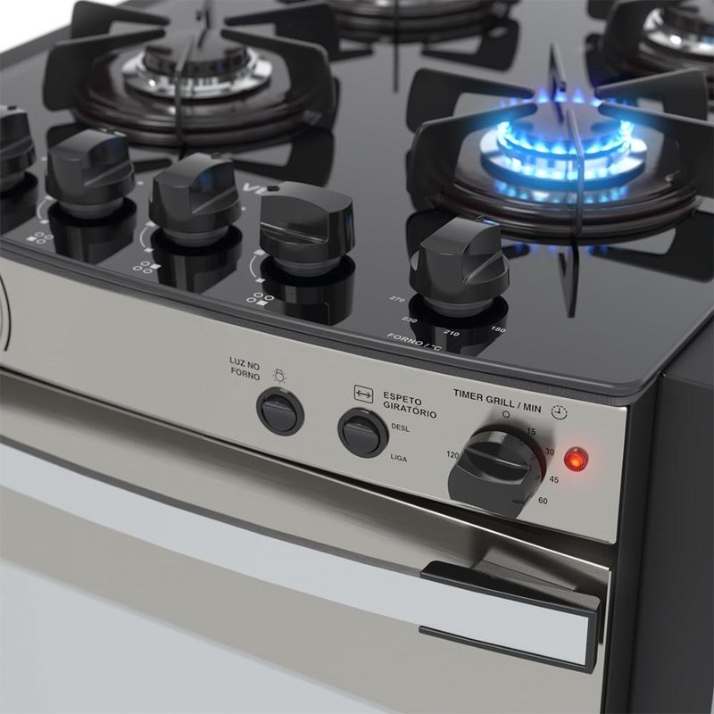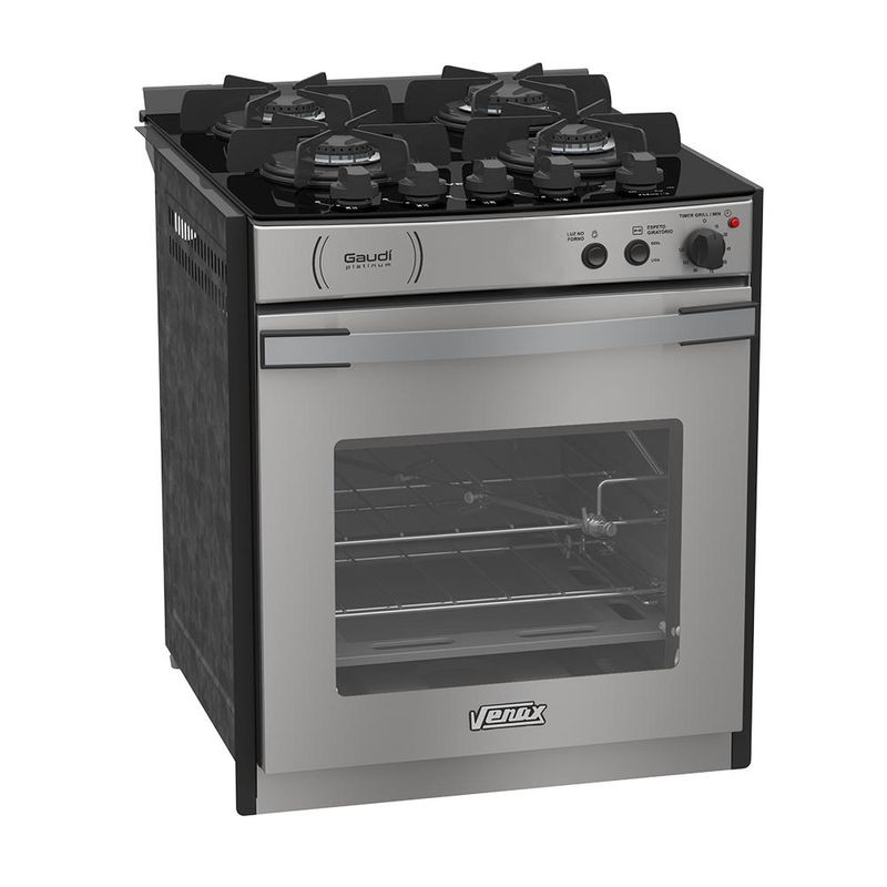 CaracterísticasTipo: Fogão de embutirMarca: VenaxAcendimento: AutomáticoQueimadores: 1 Grande e 3 MédiosTrempe dos queimadores: Individual luxo esmaltadaMesa dos queimadores: VidroTampa de vidro: NãoBotões: RemovíveisPrateleiras no forno: 2 Auto deslizantesRevestimento forno: Esmalte limpa fácilTemperatura: 5 Posições de 180°C até 290°CVálvula de segurança: SimLuz no forno: Sim (lâmpada não acompanha o produto)Função grill: SimTimer grill: SimTimer gás: NãoEspeto giratório: 1 Espeto removívelBandeja coletora de resíduos: SimPorta removível: SimPorta do forno: Visor de vidroVidro duplo na porta: SimPuxador da porta: AlumínioEntrada de gás: Uma entrada, lado esquerdo visto de frenteMedidas do produto: Altura 62cm - Largura 55,5cm - Profundidade 62cmEspecificações TécnicasAlimentação: Gás GLP (A conversão para Gás Natural não é coberta pela garantia)Tensão: 127V ou 220V (não é bivolt, selecione no momento da compra)Frequência: 60HzPotência queimadores da mesa: 1,80kW (queimador grande); 1,35kW (queimador médio)Dimensões internas do forno(LxPxA): 378x470x290 (mm)Volume do forno: 51,8LPotência queimador do forno: 2,30kWPotência do grill: 700WClassificação energética: "A"Etiquetas: ENCE e CONPETGarantia: 1 AnoL-largura / P-profundidade / A-altura