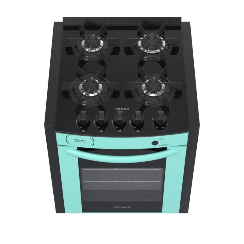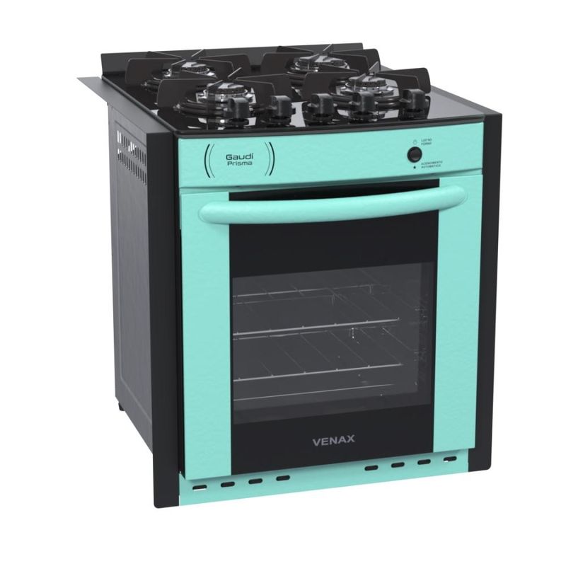 Fogao a Gas de Embutir 4 Bocas Venax Gaudi Prisma Vitreo Verde