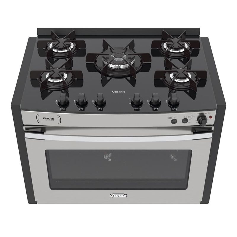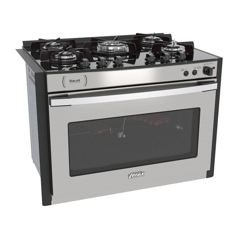 CaracterísticasTipo: Fogão de embutirMarca: VenaxAcendimento: AutomáticoQueimadores: 1 Tripla chama, 2 grandes e 2 médios Trempe dos queimadores: Individual luxo esmaltadaMesa dos queimadores: VidroTampa de vidro: NãoBotões: RemovíveisPrateleiras no forno: 2 Auto deslizantesRevestimento forno: Esmalte limpa fácilTemperatura: 5 Posições de 180°C até 290°CVálvula de segurança: SimLuz no forno: Sim (lâmpada não acompanha o produto)Função grill: SimTimer grill: SimTimer gás: NãoEspeto giratório: 2 Espetos removíveisBandeja coletora de resíduos: SimPorta removível: SimPorta do forno: Visor de vidroVidro duplo na porta: SimPuxador da porta: AlumínioEntrada de gás: Uma entrada, lado esquerdo visto de frenteMedidas do produto: Altura 62cm - Largura 82,7cm - Profundidade 62cmEspecificações TécnicasAlimentação: Gás GLP (A conversão para Gás Natural não é coberta pela garantia)Tensão: 127V ou 220V (não é bivolt, selecione no momento da compra)Frequência: 60HzPotência queimadores da mesa: 3,00kW (tripla chama); 1,80kW (queimador grande); 1,35kW (queimador médio)Dimensões internas do forno(LxPxA): 648x470x290 (mm)Volume do forno: 88,3LPotência queimador do forno: 3,30kWPotência do grill: 1250WClassificação energética: "A"Etiquetas: ENCE e CONPETGarantia: 1 AnoL-largura / P-profundidade / A-altura