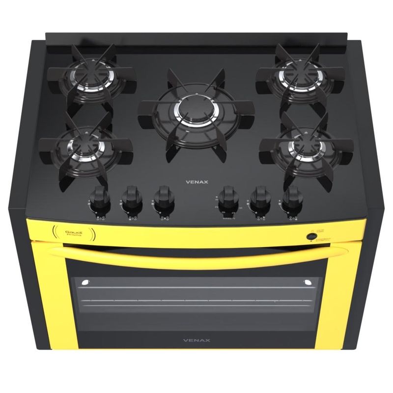 EletrodomésticosFornoForno a GásFogao a Gas de Embutir 5 Bocas Venax Gaudi Prisma Vitreo Amarelo